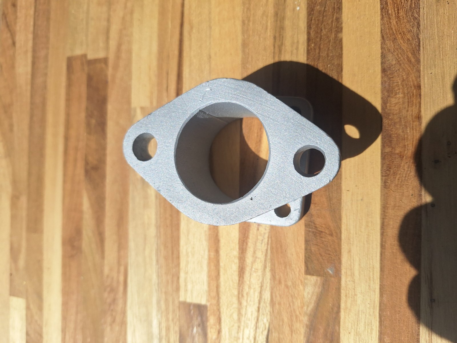 Aluminum adapter. 1 1/2" x 1 1/2" oval to square flange.