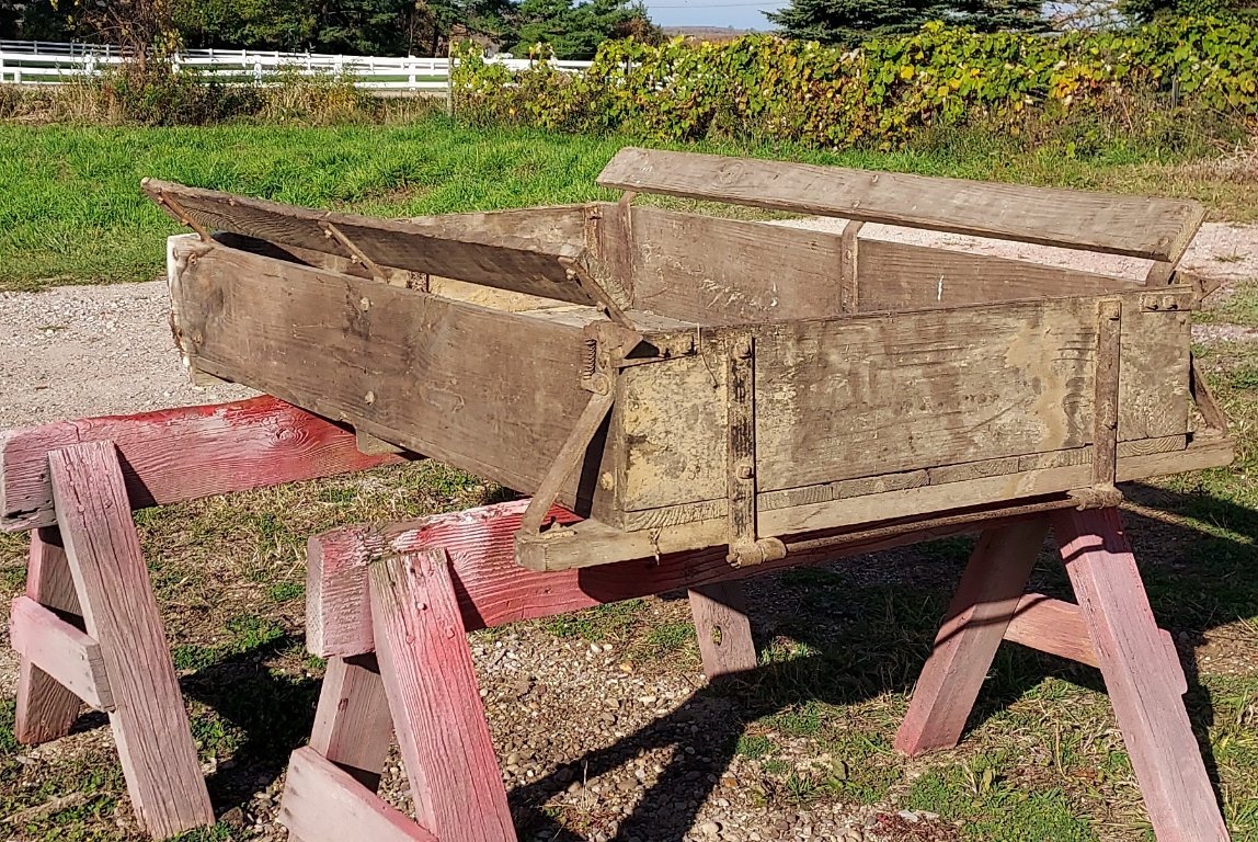 For Sale: Wood slip-on pick up bed. Remove your turtle deck and turn your runabout into a pick-up. Nice original condition, some wood rot at the front left corner at the floor from decades of storage in a barn, can be seen in the picture. Very nice complete and intact hardware with interesting spring loaded tailgate latches. Has a trap door to access the battery. I can deliver for free to the Michigan Jamboree in St Ignace Michigan in August. $600.