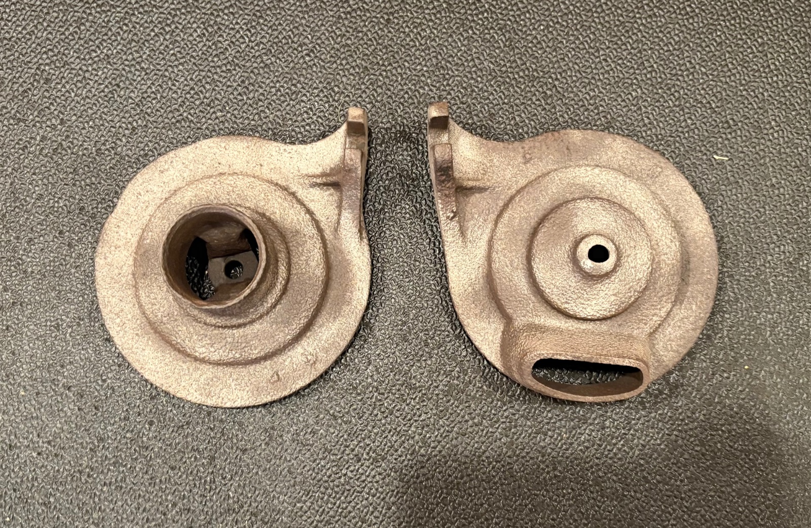 Pair of cast muffler ends. From what I can tell they are 1917-1920 style. Both have pitting.