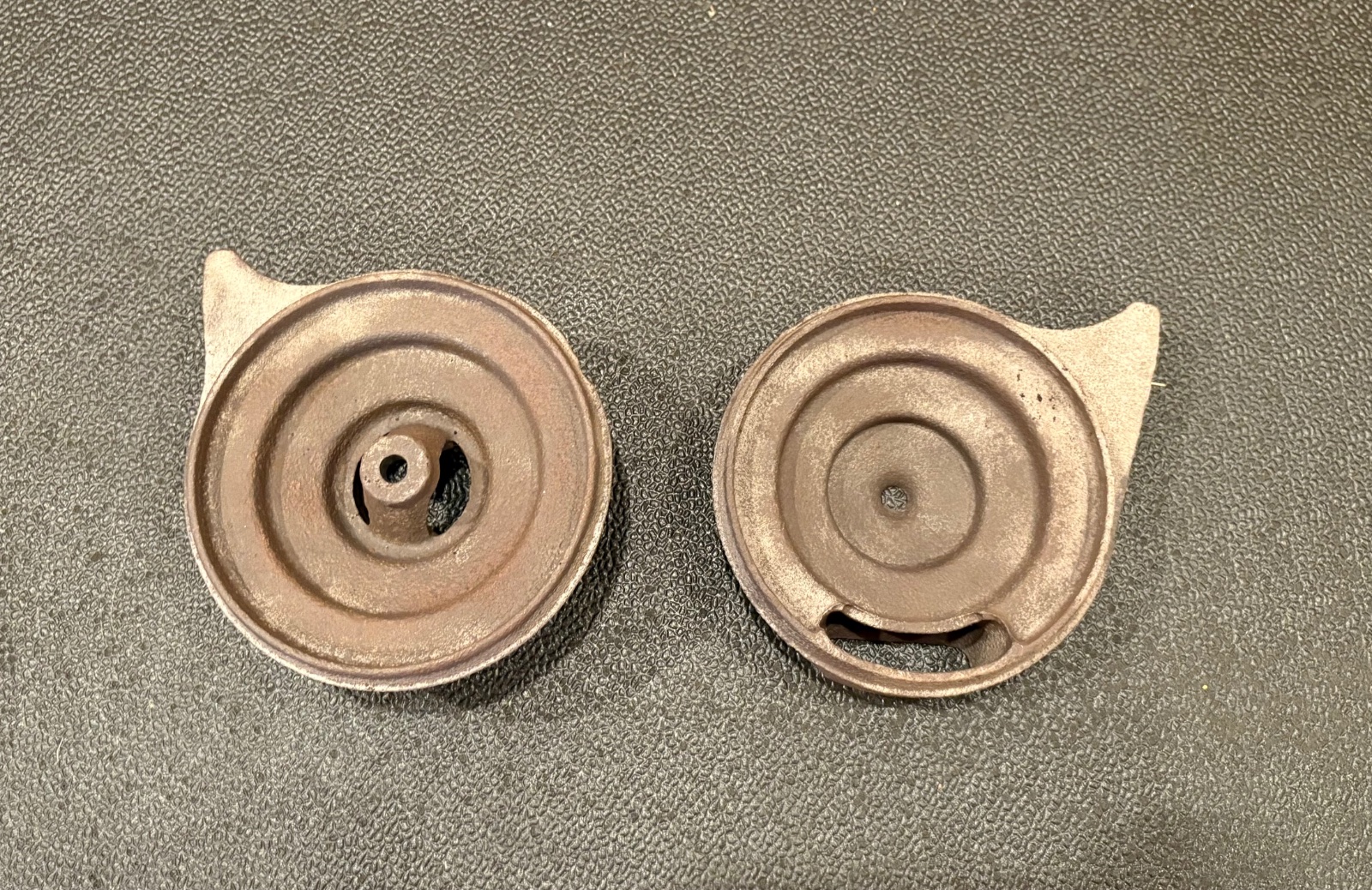 Pair of cast muffler ends. From what I can tell they are 1917-1920 style. Both have pitting.