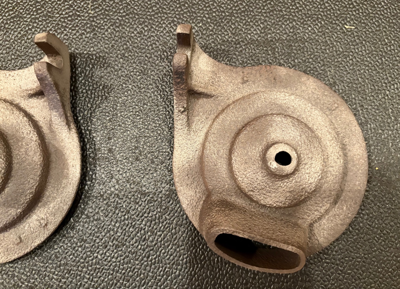 Pair of cast muffler ends. From what I can tell they are 1917-1920 style. Both have pitting.