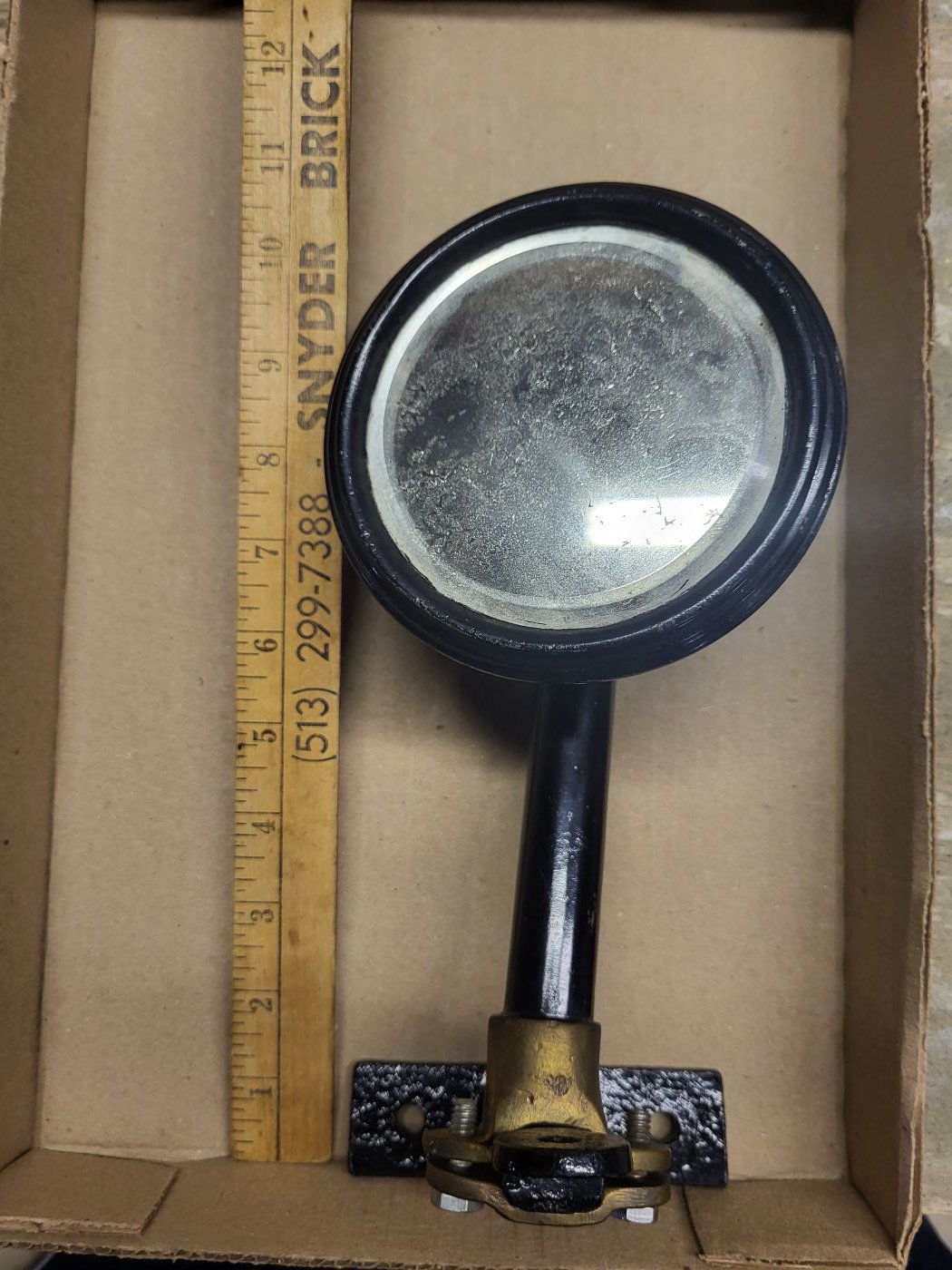 For Sale: Alexander Mirroscope rear view mirror and brackets. This mirror is an accessory for an early 1900's vehicle. See the attached photos for condition. Includes extra mounting brackets. The mirror is in decent condition and is quite sturdy. This would be an excellent rear view mirror for a touring car or commercial vehicle. I am asking $15 plus shipping. I would like to see this go to a good home.