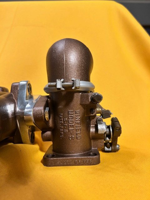 REBUILT WINFIELD MODEL S CARBURETOR. SIZE B. THROTTLE IS A S-1-B AND FUEL BOWL IS A SBU. CARBURETOR HAS BEEN ULTRASONIC CLEANED AND ALL PASSAGES WERE THOROUGHLY CLEANED.THROTTLE IS NICE AND SMOOTH. INTERNAL BRASS HIGH SPEED AND INTERMEDIATE COMPENSATORS ARE CORRECT AND STAMPED B. HIGH AND INTERMEDIATE NEEDLES ARE IN NICE SHAPE. SIDE DRAFT ADAPTER CAN BE REMOVED TO RUN CARBURATOR AS A UPDRAFT. COMES WITH BASE GASKET AND (COMES WITH ORIGINAL NOT COPY OF INSTALLATION INSTRUCTIONS) $2200 SHIPPED TO YOUR DOOR. LOCATED IN LA MIRADA CA. IF YOU WOULD LIKE I CAN EMAIL YOU MORE PICTURES. THANKS FOR LOOKING.