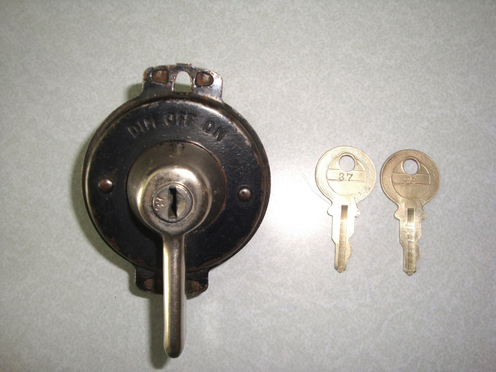 Tumbler and keys are stamped "37."