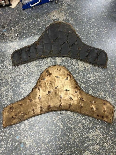 Anyone interest in a period correct leather tufted seat insert for use (these are very old and worn) or great for patterns. They have leather laces that were woven into the metal seat bucket to hold then in, really cool design. I bought them at Hershey several years ago and used them for a pattern, now passing them on to anyone out there that may want them. I paid $25 for the pair and will sell them for the same. Stop by My Hershey spot and take a look.