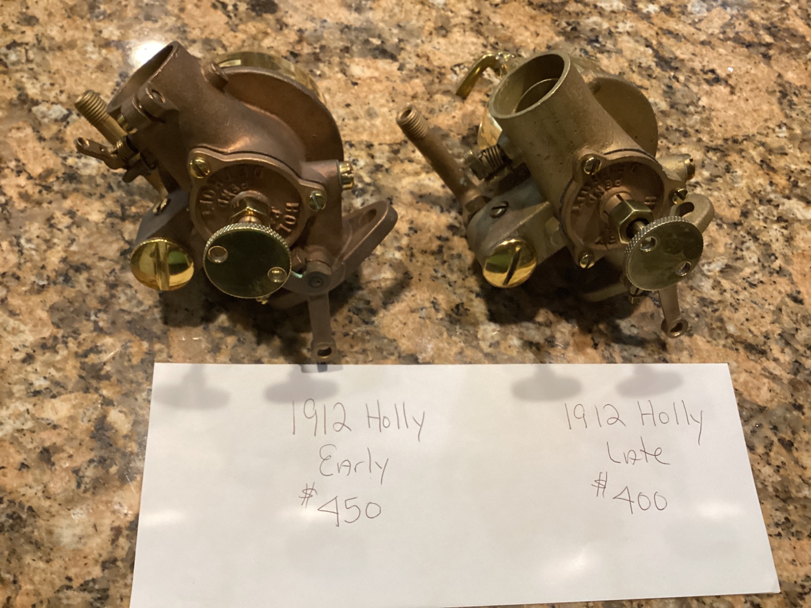 1912 Holly H1 early carb $450, late model $400, all restored by Russ Potter, all plus shipping, have several of each . Larry