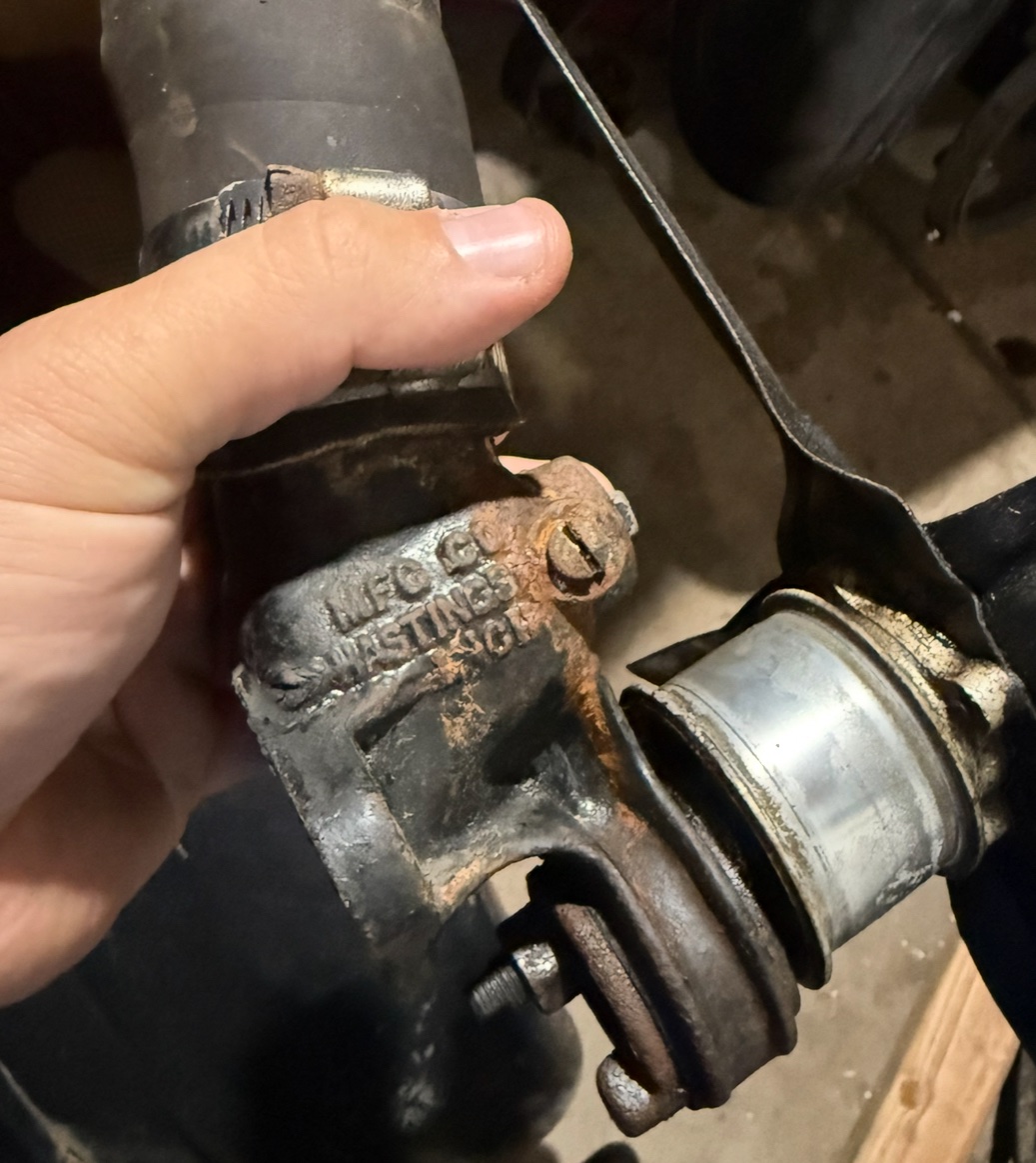 Hi Adam! Does it seem like those plugs in the front would mount a water temp sender or is it some kind of tensioner? Maybe hoses out for a heater? Have you tried removing those? Did you run the car with that outlet and did the fan belt slip off or ride up against the front or back of the pulley? Those brackets can be “droopy” after so many years, but I’d like to buy it if you don’t find a trade. Thanks! -Chris, in Boulder