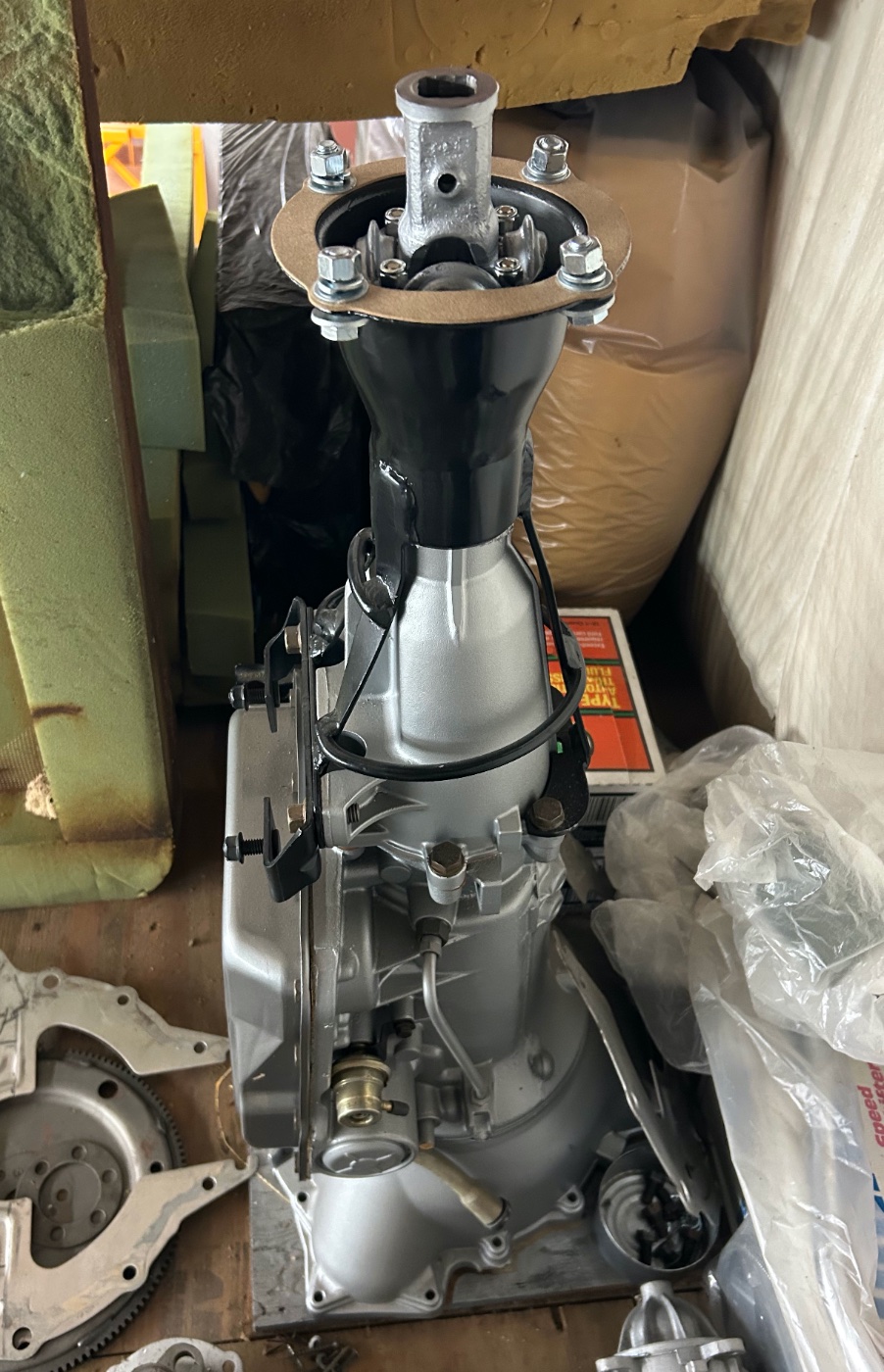 Completely rebuilt Ford C3 Automatic with all the C3 accessories (starter, flex plate, torque converter, dip stick, cooler, starter, etc, etc) minus the forward adapter plate, rear has had extensive mods to go back to a shortened enclosed driveshaft. T engines will not load up with this beast. Puts the horsepower in balance with the torque with a very smooth non-vibration experience. BONUS..., no more sore left leg, braking is controlled by down shifting with no ill effects, etc, etc, etc.