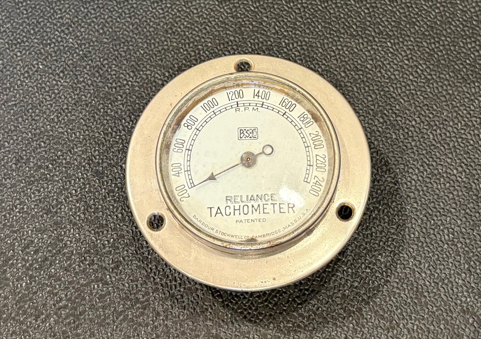 Really neat vintage cable driven Reliance Tachometer. Reads 200-2400 RPM. Good range for a T engine. Overall diameter is about 5”. Looks like nickel plated, should polish up nice. Takes a 1 1/2 to 1 drive. I spun it gently with a drill and the needle moved. Would look great in a speedster!