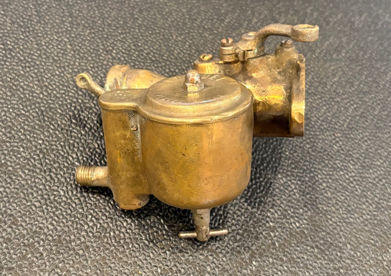 Brass Toquet carburetor. Appears complete. Throttle and choke are free. Interesting design and seems like a pretty basic carburetor with a straight through design. The only things I could find wrong with it are the choke spring is broken and the threads on the fuel bowl inlet aren’t the prettiest but could use a little touch up with a thread file.
