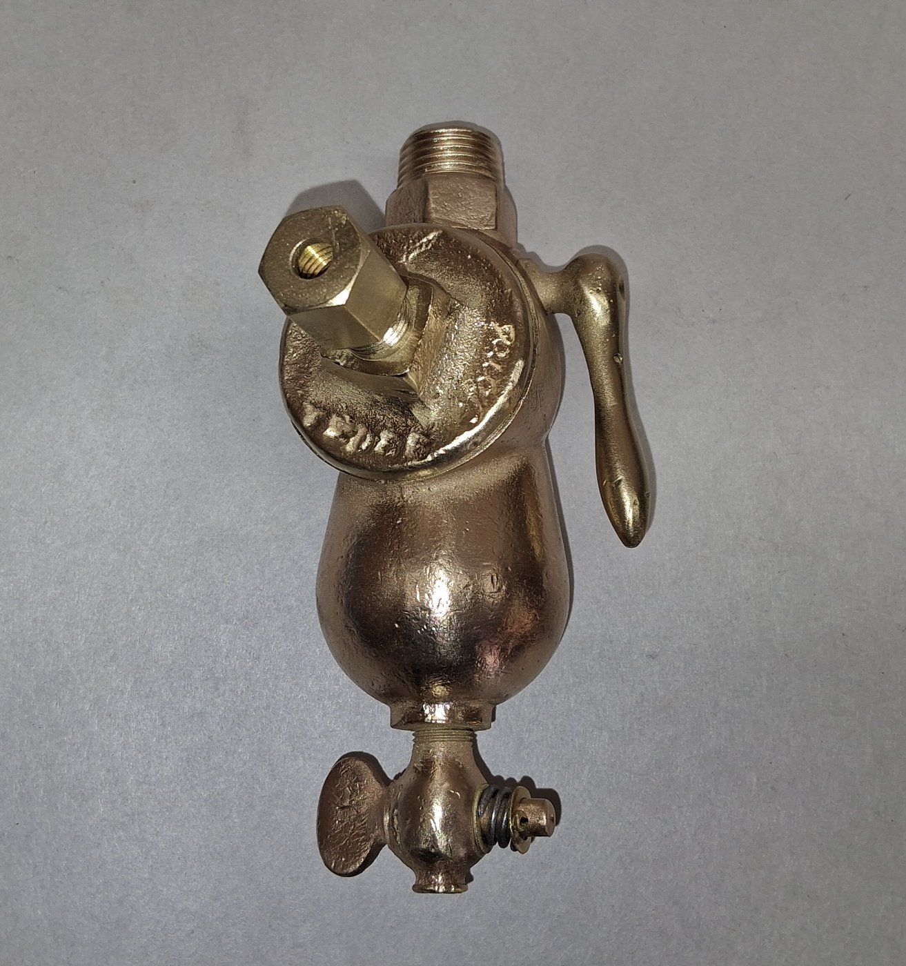 Early brass sediment bulb with Ford scripts. Arm is snug and turns freely $75.00 plus $8.50 domestic shipping. Mark Chaffin (951)805-0928