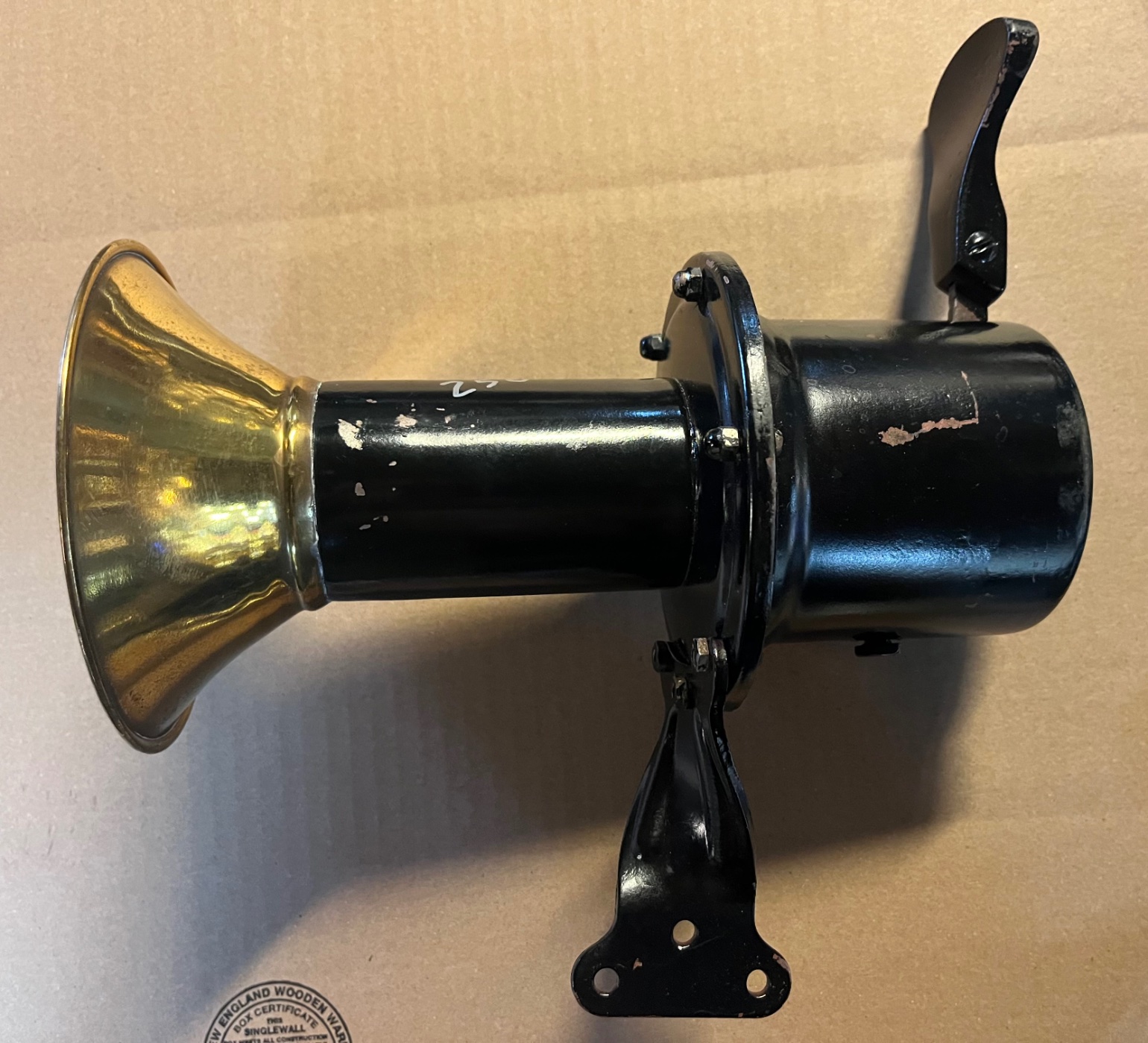 Interesting design accessory Horn that has a “push lever” to make a loud signal. Brass bell and black painted housing with bracket that mounts on the Fake door of a touring or roadster body. SOLD plus shipping. Lang’s 1-800-872-7871