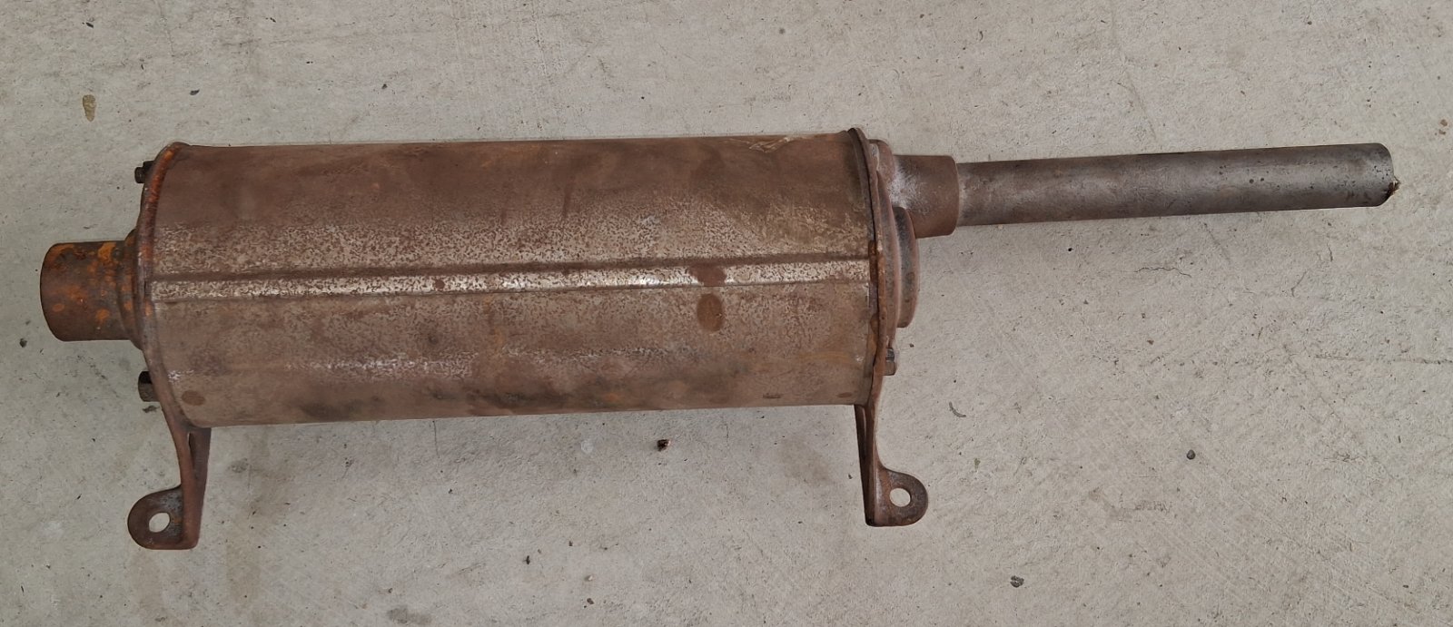 Two cast end mufflers with 8 1/2" pipes. No longer reproduced. Take your pick $250 each plus domestic shipping. Mark Chaffin (951) 805-0928.