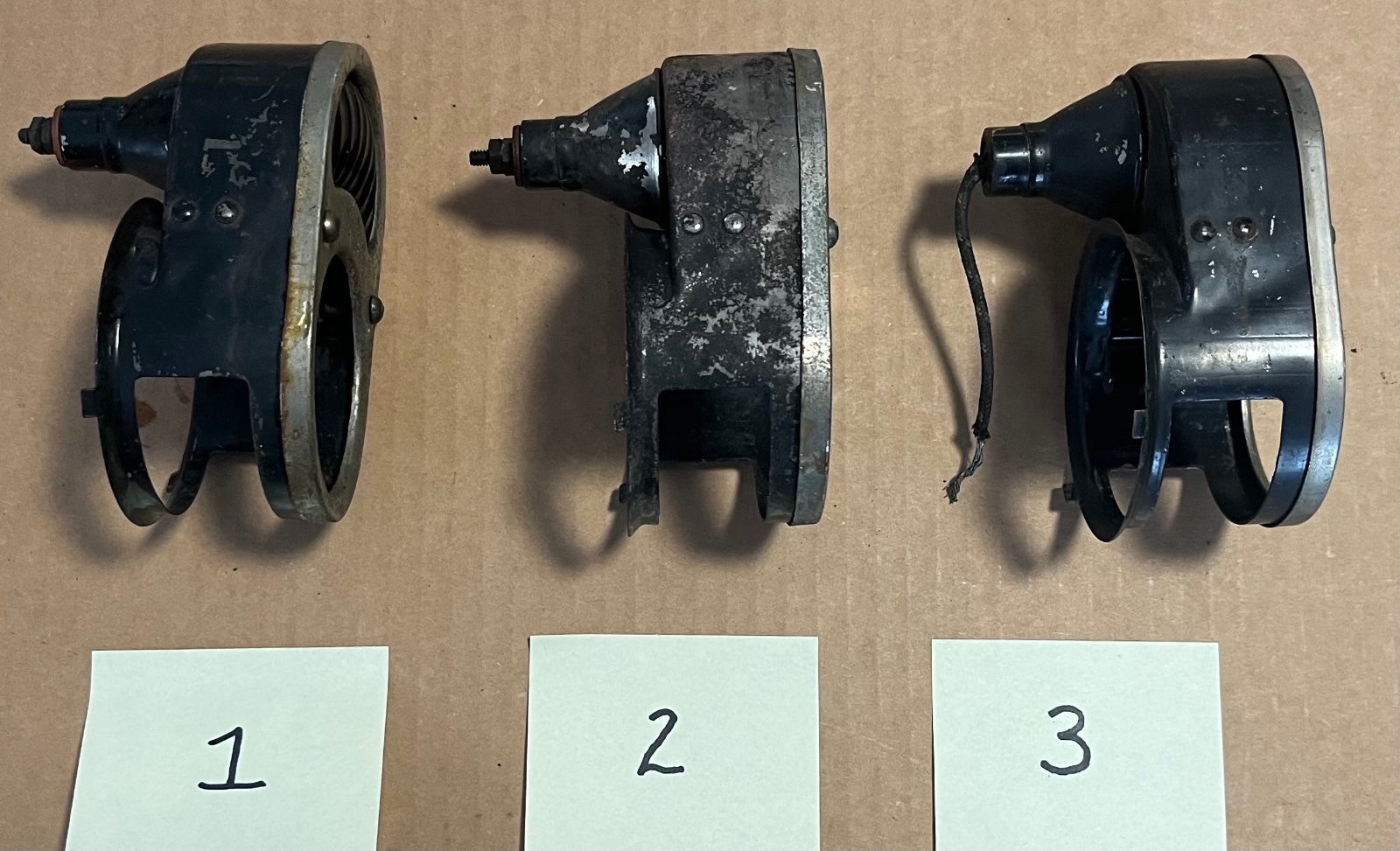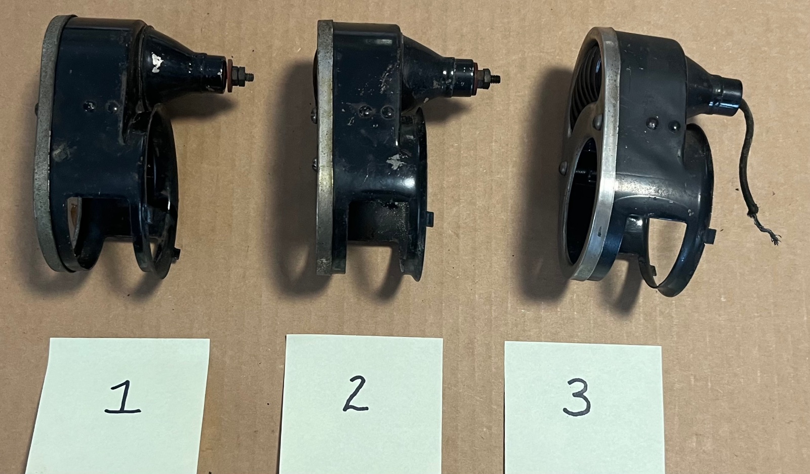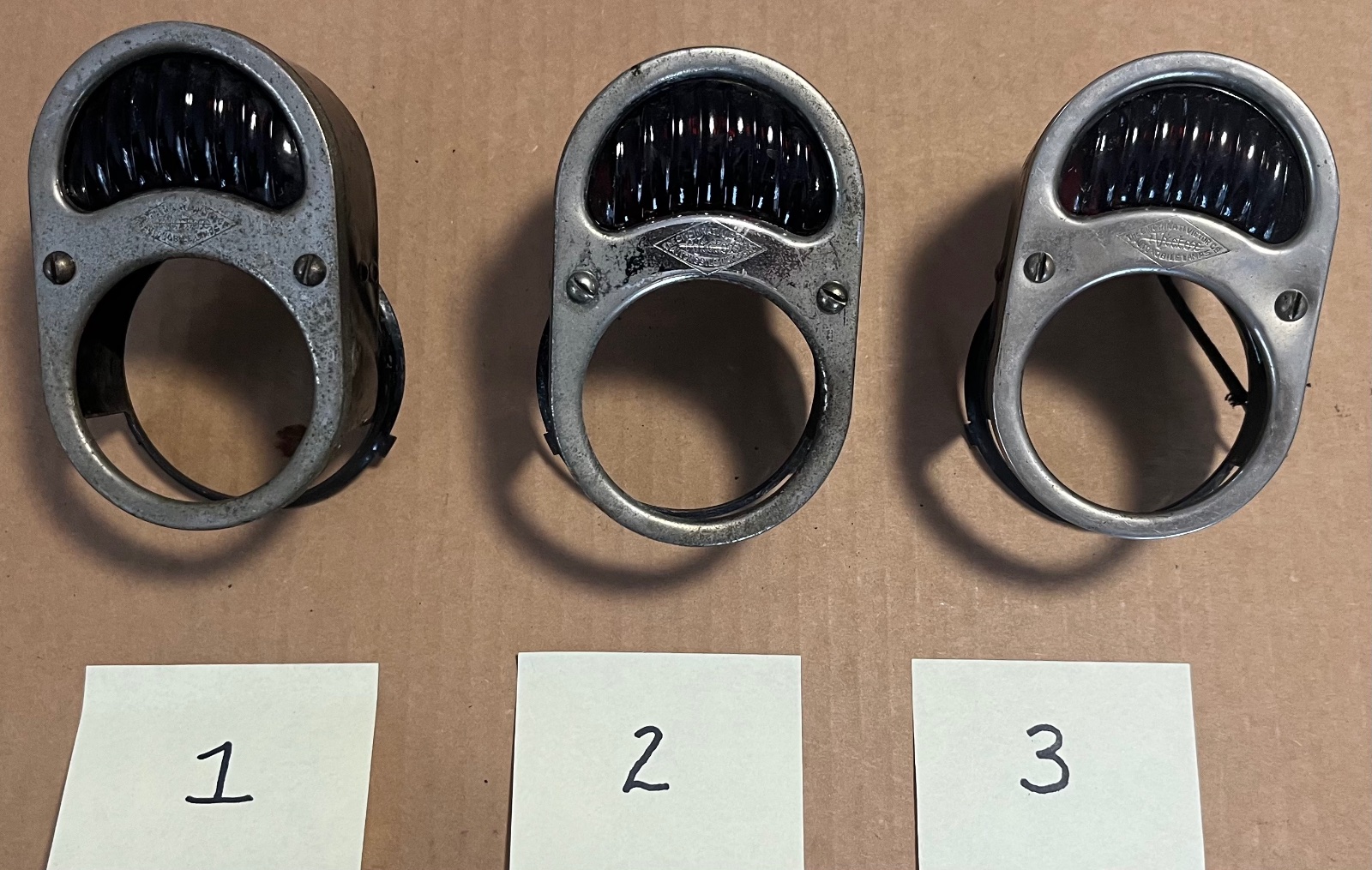 For Sale are 3 most likely NOS accessory Stoplight units. Selling EACH for SOLD plus shipping. These replace the housing on 1924 - 1927 standard Ford taillights. Easy to install they are put on with a snap ring. Made by Victor. #1 and #2 are missing a small cap that covers the wire connection that does not effect usability. Lang’s 1-800-872-7871