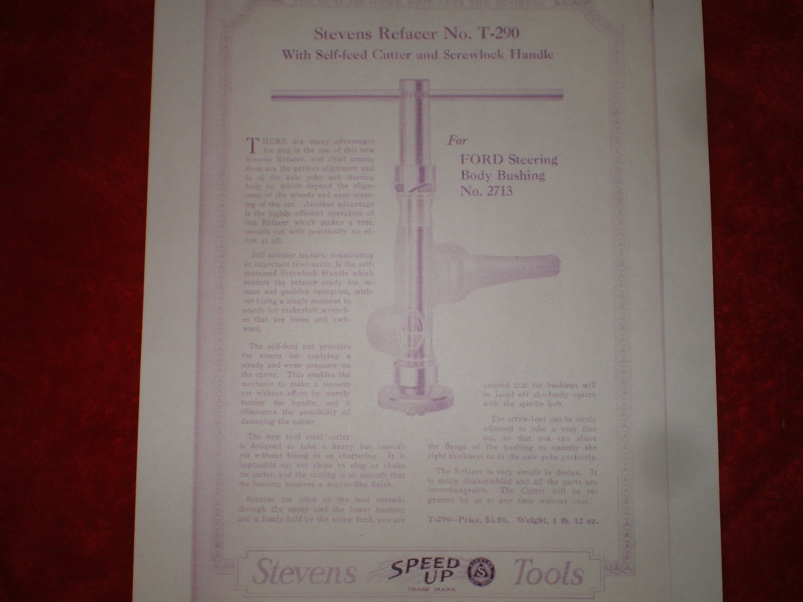 SOLD Stevens spindle bushing re-facer. Marked "STEVENS NO. T-290". Threads are in good shape. Price $285. plus shipping. Email, call or text (248) 894-75fiveone. Thanks, Walt