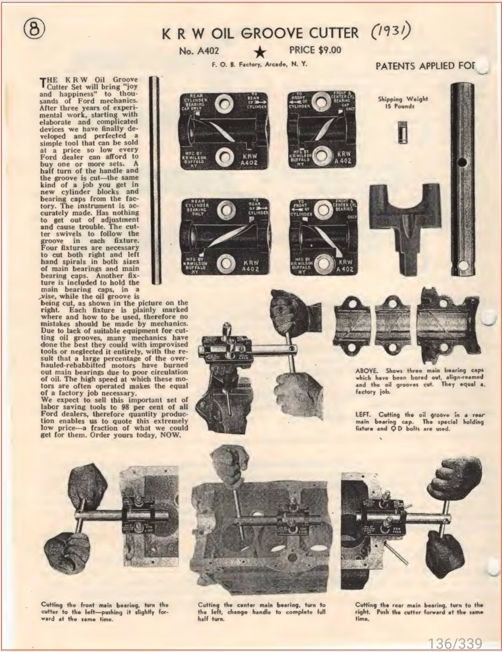 KRW B402 oil groove fixture for the front and center cly bearing. It was in my KRW stuff and I was hoping to find the rest, but running out of time. This is for a Model B Eng, kind of rare.