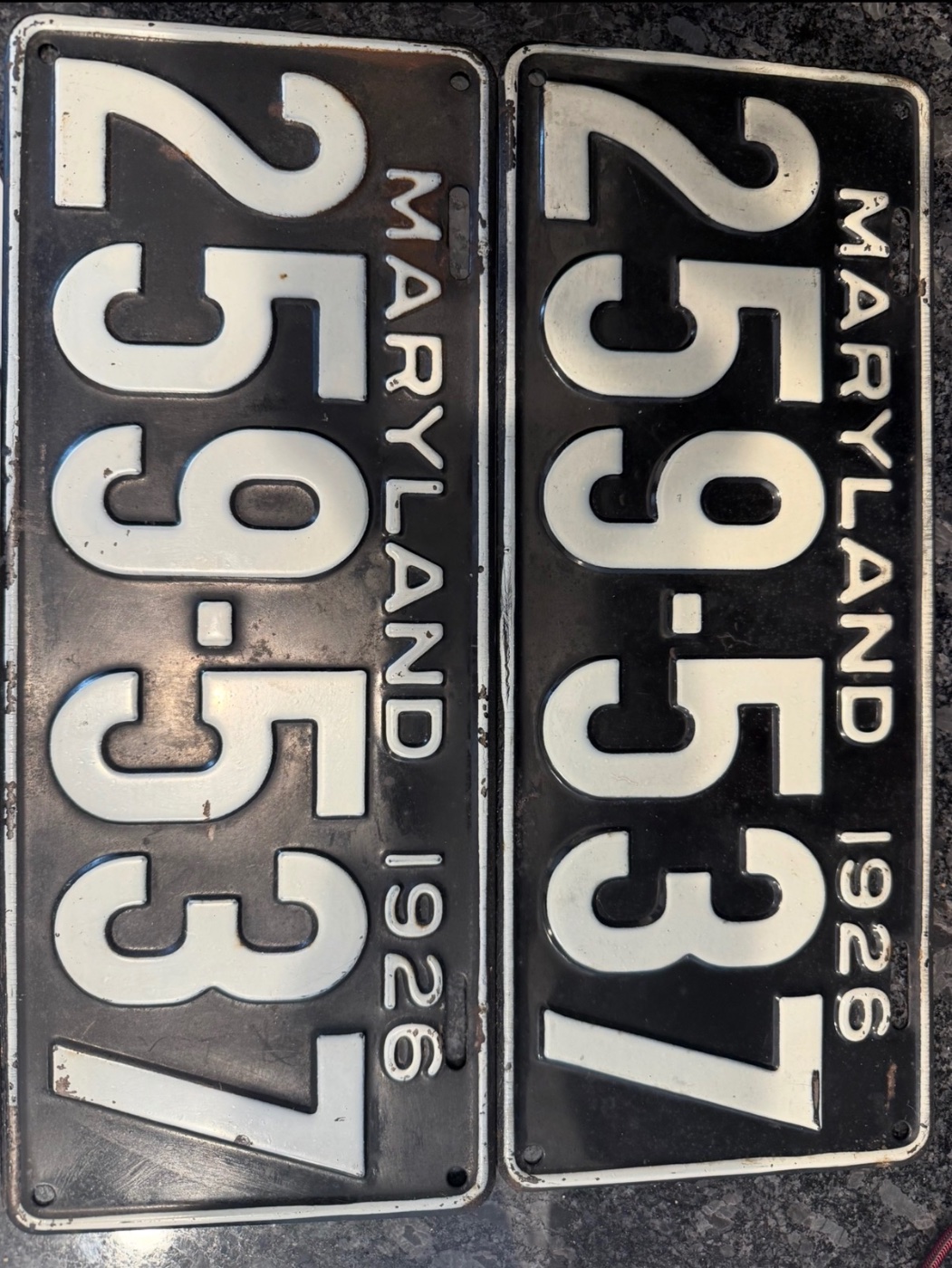 1926 Maryland Plates Trade for 1921 Maryland Plates