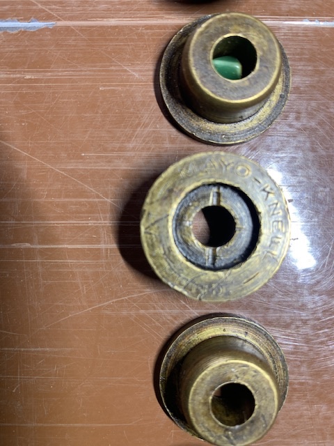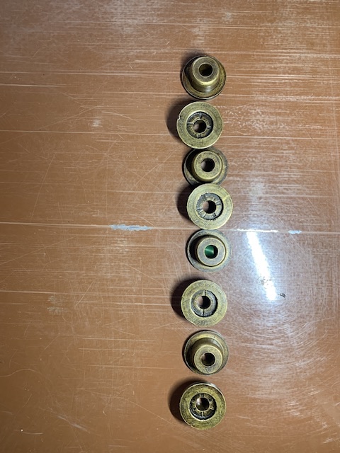 Here is a set of 8 aftermarket valve spring retainers I removed from an engine. They appear to be bronze. I either rebuilt or parted out the engine. These were not removed cause of a problem with them. I saved them cause they were different, only ones I have seen. $50 + shipping for the set. See pictures. Email me by forum. Thanks Dan