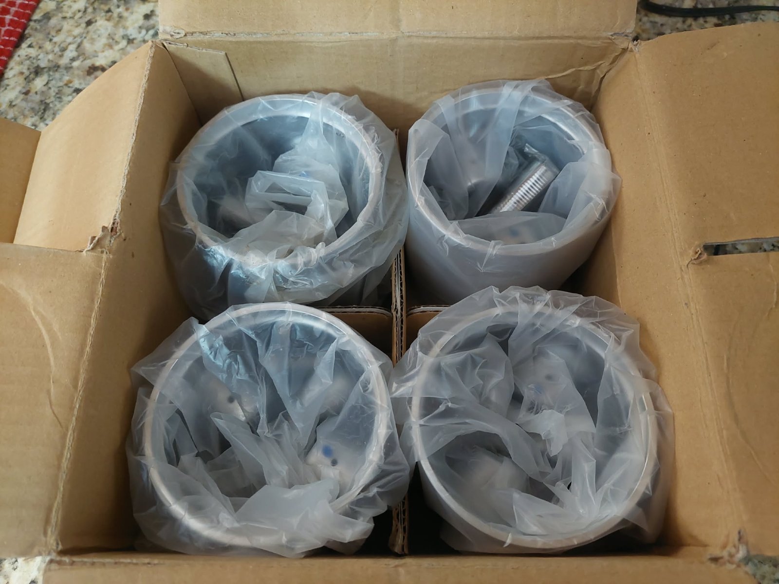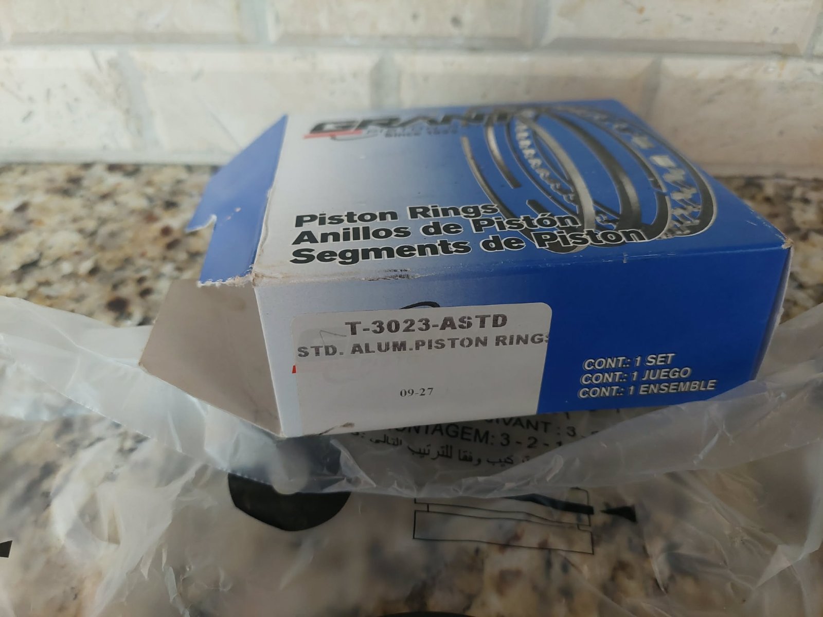 New standard piston set with wrist pins in the box and packaging. $125 + shipping