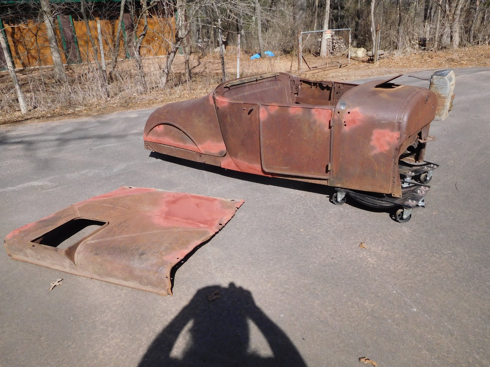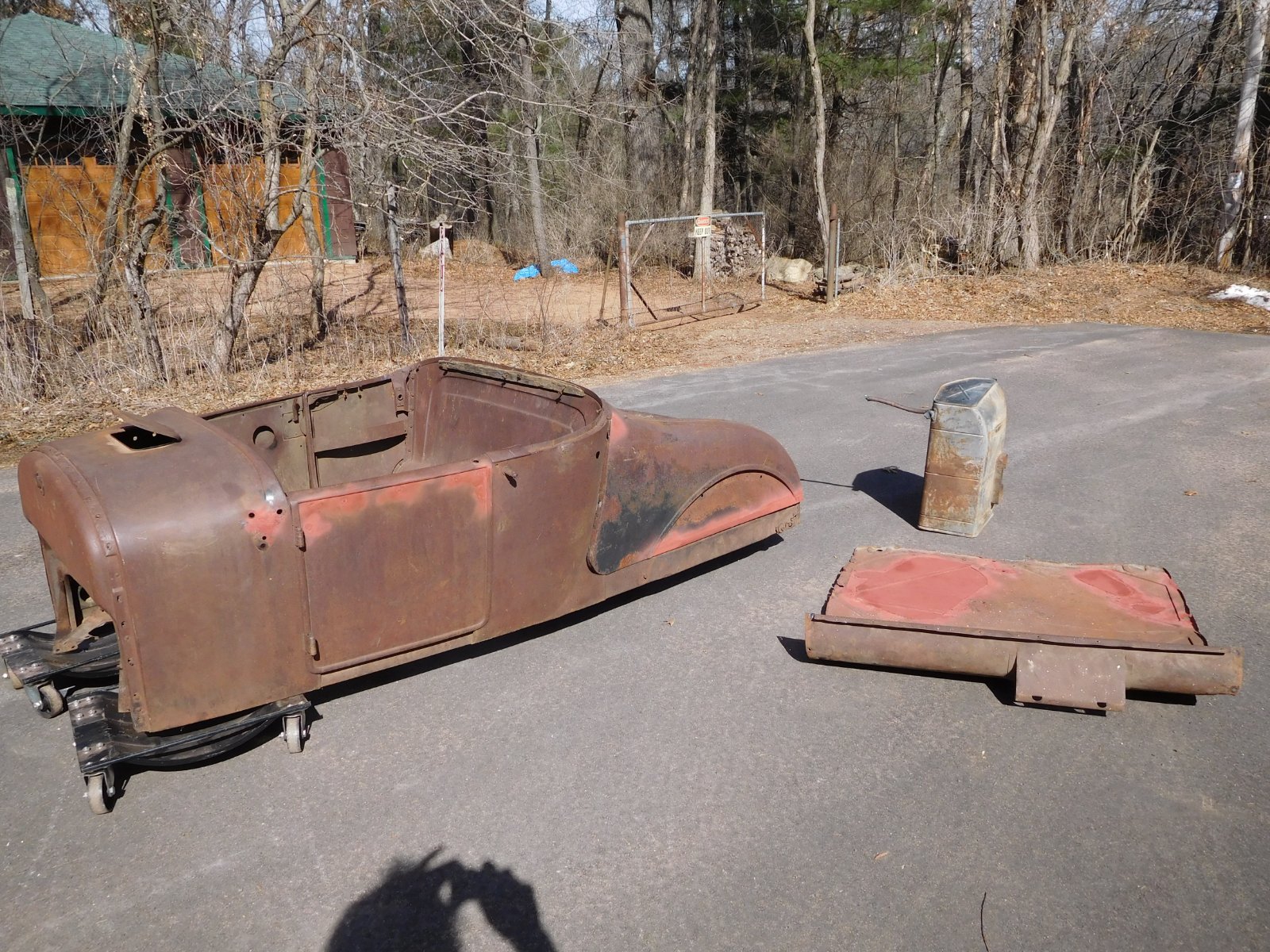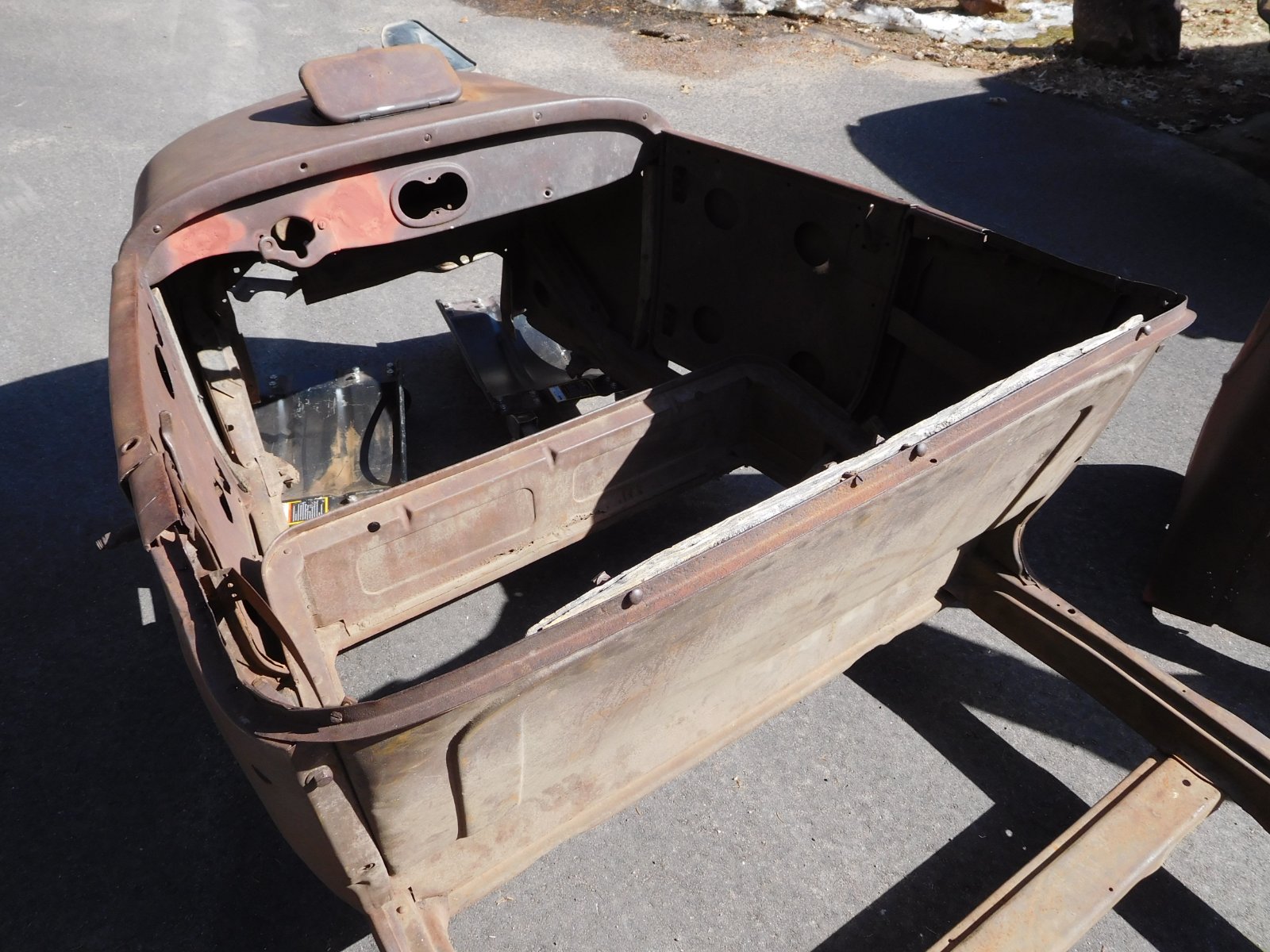 For sale, 26-7 roadster body with turtledeck, turtledeck floor, gas tank with straps ( nickel size hole in bottom ) No trunk lid. $1700 firm