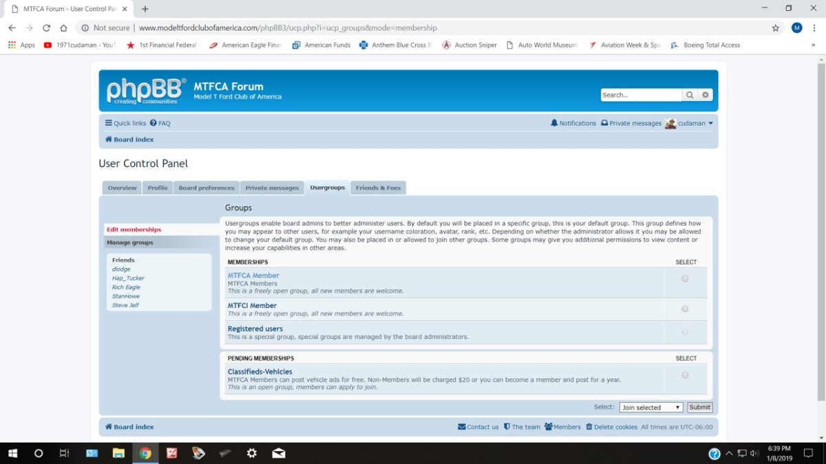 If you want to be able to sell vehicles in the classifieds, do the same as above for the "Classified - Vehicles" group. After you click on the "submit" button, your status for that group will change to "pending" while awaiting administrator approval. If you get approval, you will then be added to that group.