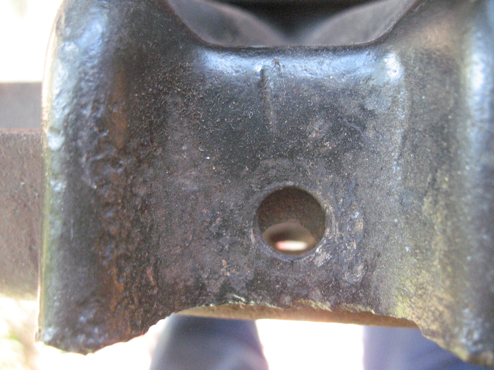Earlier I repaired these rounded-out carriage bolt holes, and today's job was to fill the little craters around them.