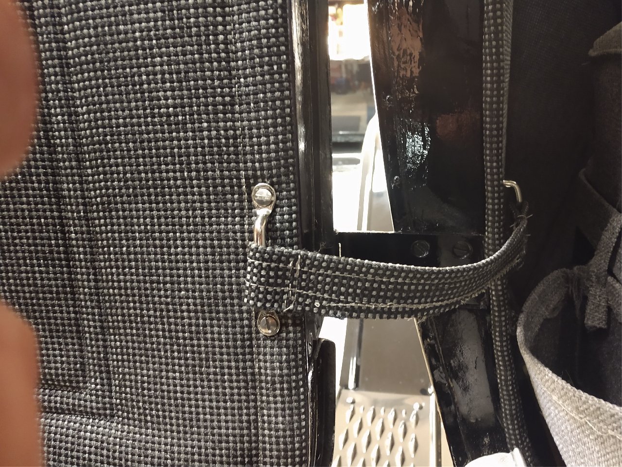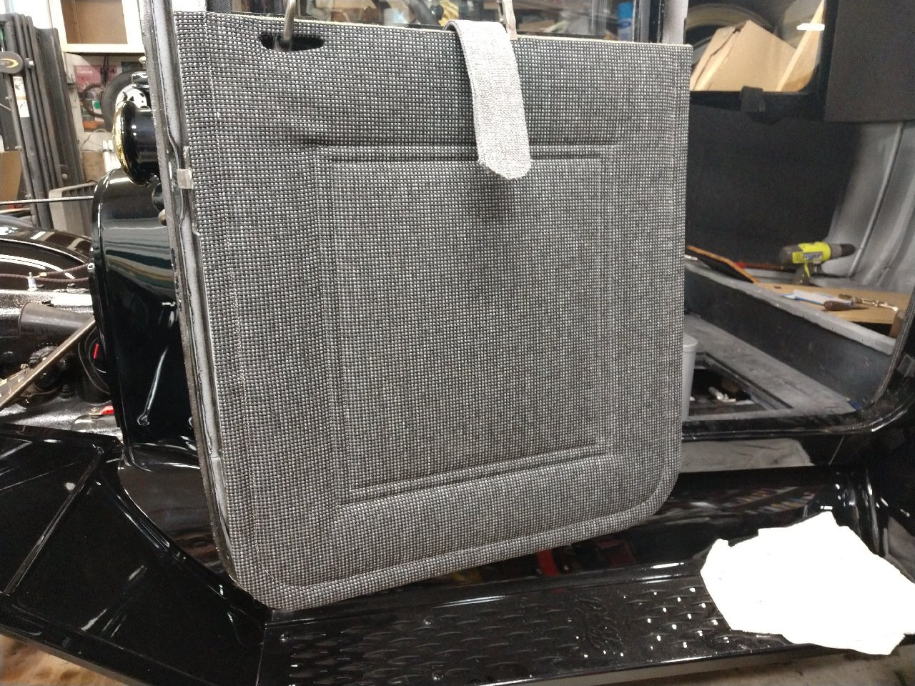 Back on the subject. I decided to make a pocket to keep things like sun glasses, cell phone and etc. Also i have been cleaning up the upholstery work. Still have a ways to go. Installed the door strap's.