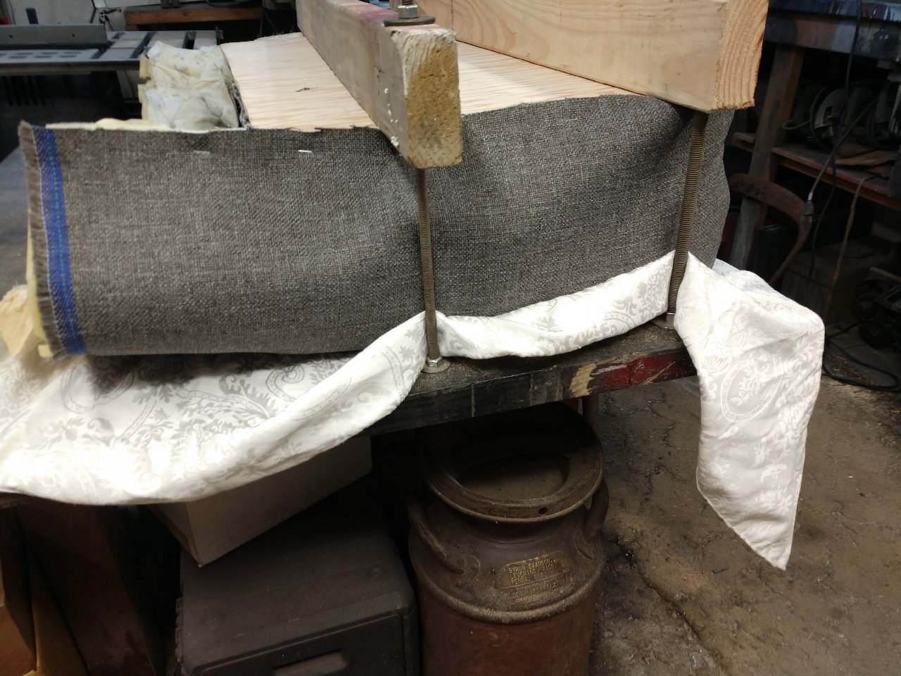 Since we are showing off our equipment, here’s mine. I was an upholsterer in a past life. Most people think size matters, and if so, I win. Don is proof, though,that it’s not the size of your equipment, it’s how you use it. This can all be done by hand sewing, if you have the time, so don’t let lack of equipment hold you back. Beautiful work Don, and you’ll really enjoy the “new” machine.