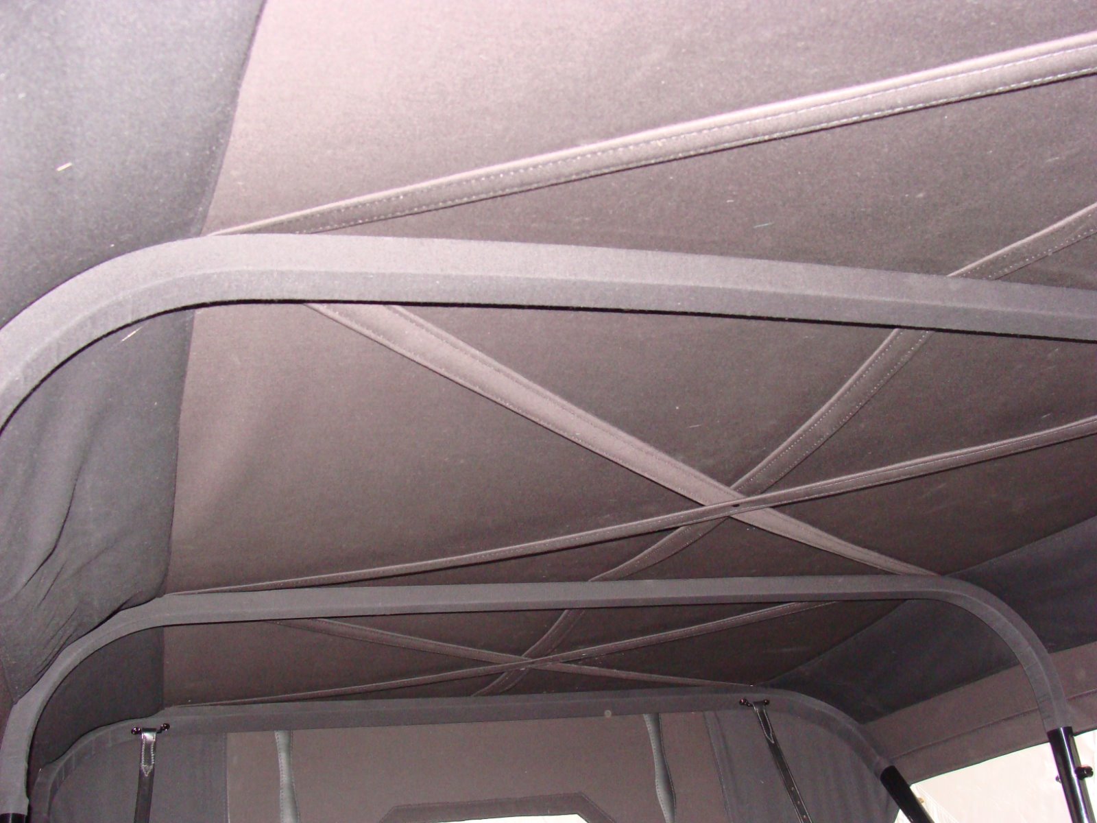My 1911 Touring came with a new JV Auto Interiors top kit. The kit has enough webbing to have two pieces from the front bow to the rear bow. I have seen pictures of 1911's with the webbing in an X pattern between each bow with one piece of webbing going straight thru the X in the center. Which is correct and with the X pattern is the piece in the middle the same width as the X webbing? Thanks, Art