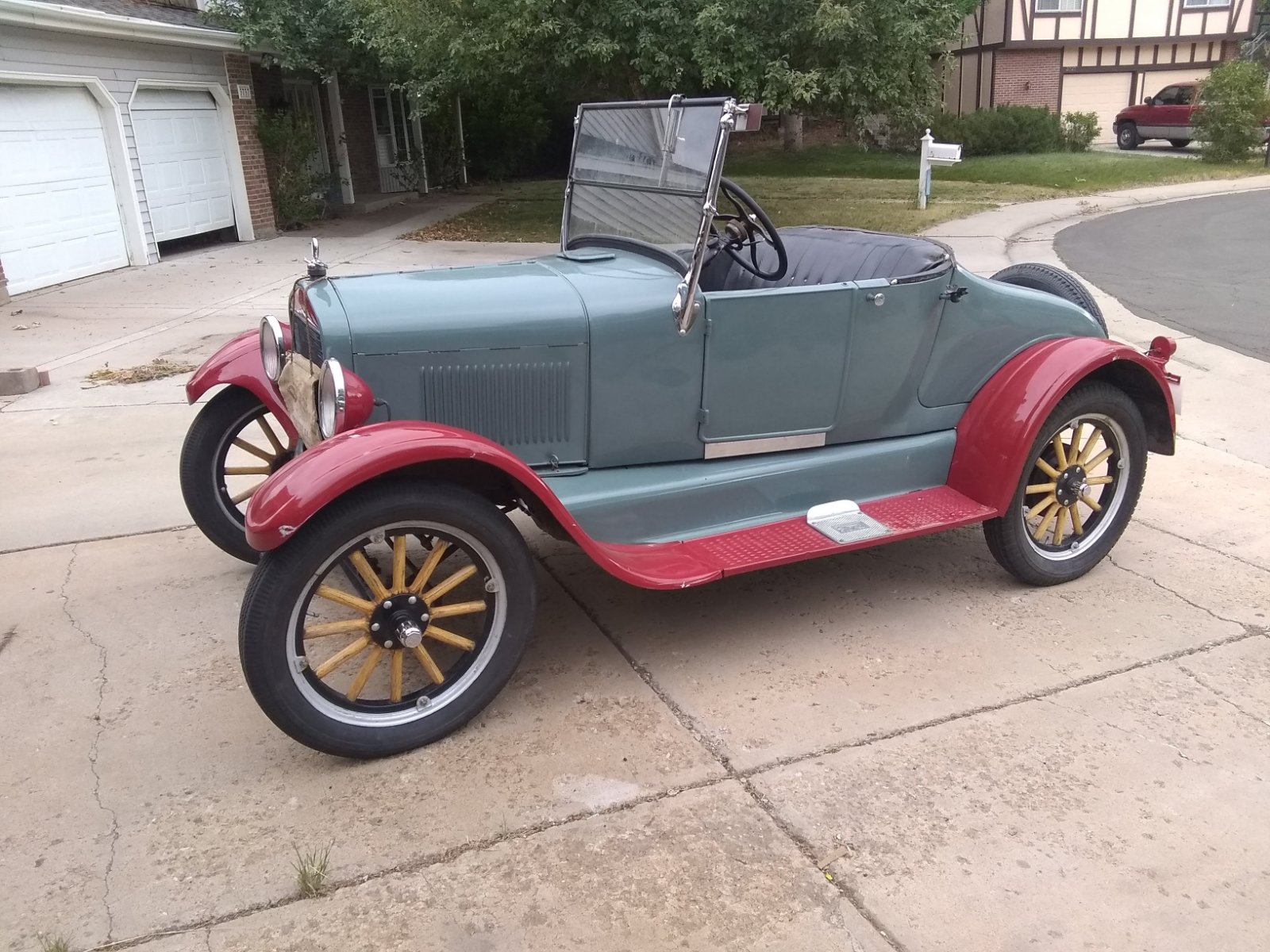 The kingpins are worn out with a good 3/16" slop each, and the replacement oak spokes have a lot of slop in them. Anything above 25 mph with bumps results in death wobbles. It was a hairy drive 14 miles round trip to the inspection station to have the chassis numbers verified for DMV to get the title in my name (required in Colo for out of state titles), so I'll not be making that long of a journey again anytime soon. The car ran great, but there were a few tense moments when I couldn't avoid manholes/potholes. Until I get around to starting on this project, it'll be a 15 mph cruiser through the neighborhood a couple blocks over to the local burger joint for dinner and Friday cruise nights once COVID-19 settles down. It's our first Roadster and is a hoot. I have a 1940 Ford coupe that is taking my current attention and funding, and the '27 coupe still has a couple things needing attention. We might sell the '27 to fund the Roadster, though. I ran across this Roadster and couldn't pass up on the deal for its condition.