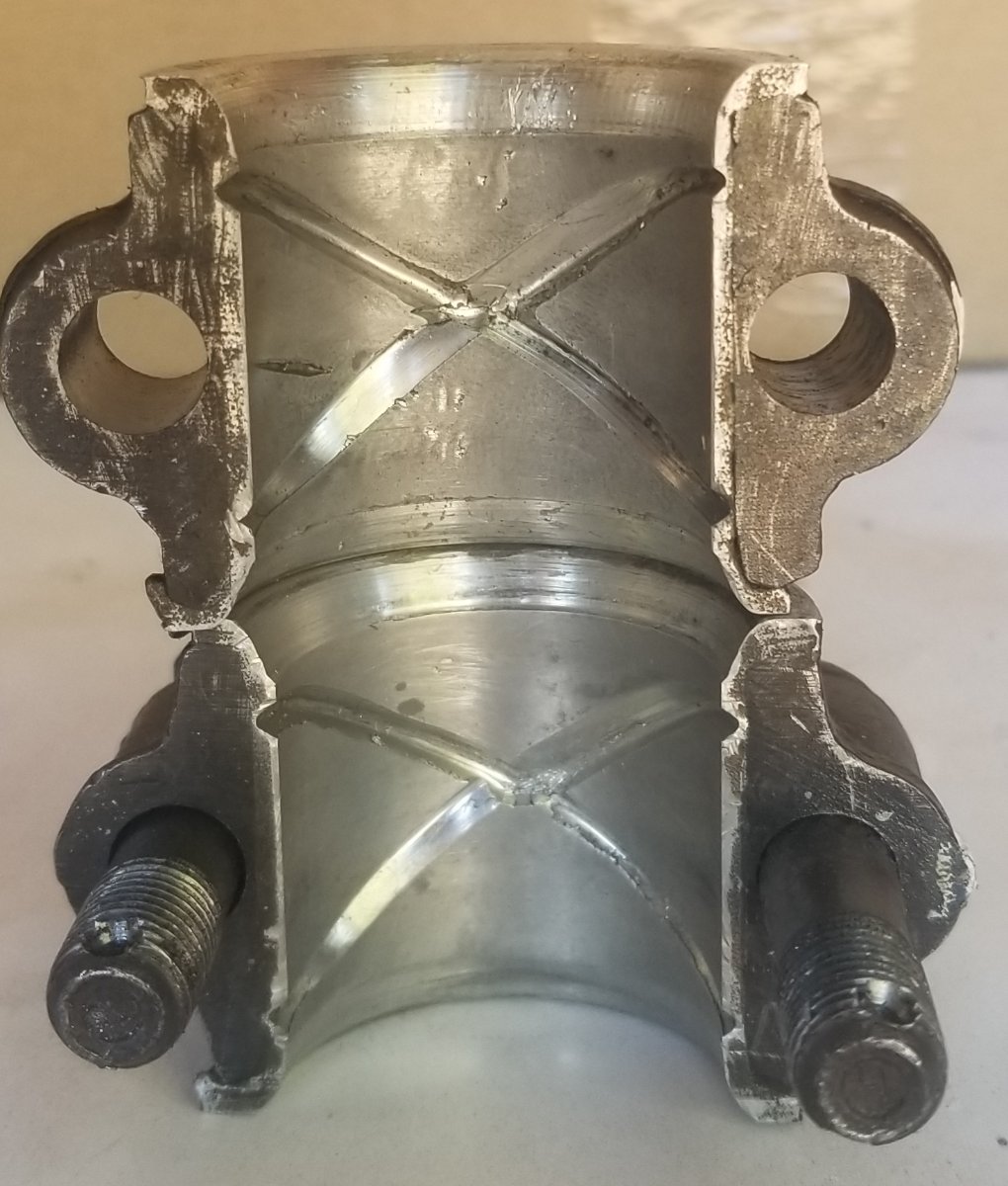 With no oil holes, and no relief at the parting lines, I wonder whether those roughly cut X groove in both cap and rod would ever get much oil. Contrast that effort with the beautiful job Herm used to do.