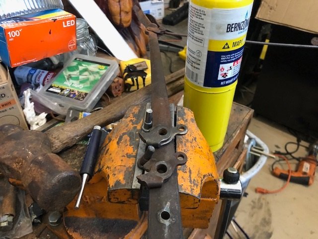 The pawl is changed out with lots of pounding and heating. Was burning my fingers until I thought hey, gloves! Picture shows tools of the job. Next is the results. I measured the cam lever, they only differ by .1 of an inch 2.7-2.8 width, 3.7-3.8 height from the mount of the shaft to the top.