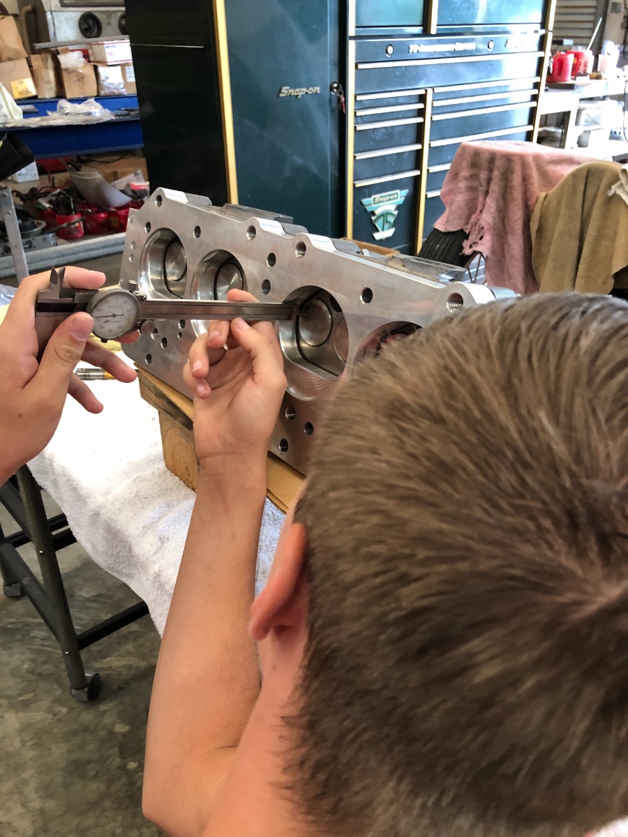 A big day with the young men.., Lights came on like a pinball wizard on crack! They learned the fine art of deck checking, stoke balance (length) and combustion chamber clearances. Now they understand balancing the combustion chamber in relationship to compression ratios with the appropriate clearances on the top to prevent too much heat build up (melt down). We did wet set checks on the valves, and went over how to fine tune compression of the engine by means of shims under long reach aviation spark plugs. Later we will get out the oscilloscope with a dynamic-strobe attachment to fine tune arc. Dear ole Dad can't wait to see their expressions in the old glass of water on the valve cover trick with no ripple engine running at idle.