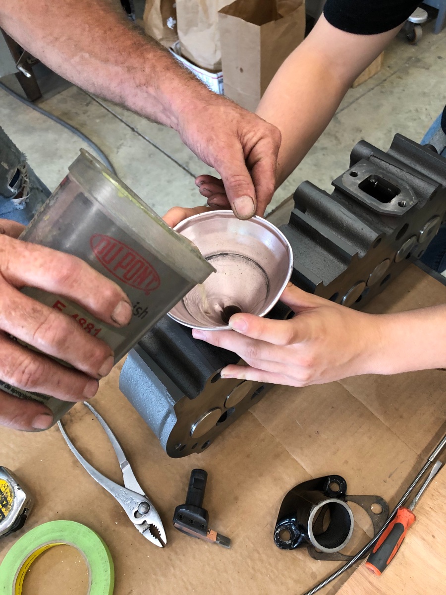 A big day with the young men.., Lights came on like a pinball wizard on crack! They learned the fine art of deck checking, stoke balance (length) and combustion chamber clearances. Now they understand balancing the combustion chamber in relationship to compression ratios with the appropriate clearances on the top to prevent too much heat build up (melt down). We did wet set checks on the valves, and went over how to fine tune compression of the engine by means of shims under long reach aviation spark plugs. Later we will get out the oscilloscope with a dynamic-strobe attachment to fine tune arc. Dear ole Dad can't wait to see their expressions in the old glass of water on the valve cover trick with no ripple engine running at idle.