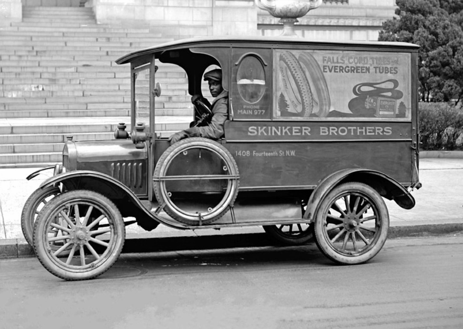The "bottom one" appears to be a genuine Ford while the ones above it are not. Unfortunately the man is standing in front of the parts that make it easier to prove its a Ford but sometimes the photo finish is too rough to see enough detail to be totally positive anyway but I would say it matches too many places that I CAN see so I am going to add it to my collection of Ford "Delivery Car" pictures.