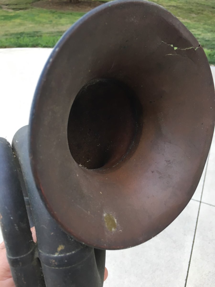 I bought this triple twist a couple years back with a speedster in mind,,,, It's time to get my pile of parts put together. Is this crack in the bell fixable? Who? How? The rest of the horn is pretty decent.