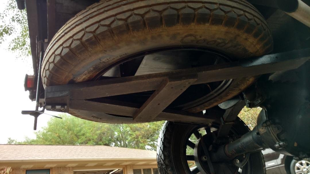 Im getting ready to make an under bed spare tire carrier for the 23 TT. I have two sizes. 32x4 1/2 rear and 30x3 1/2 front. The 8in1 bed is long enough for this. Just asking to see what others have come up with on their T pickup or TT. Im leaning toward a hinged front mount that swings down in the rear so Im not lifting both rims and tires to the ground for access. Any photos would be great. Thank you.