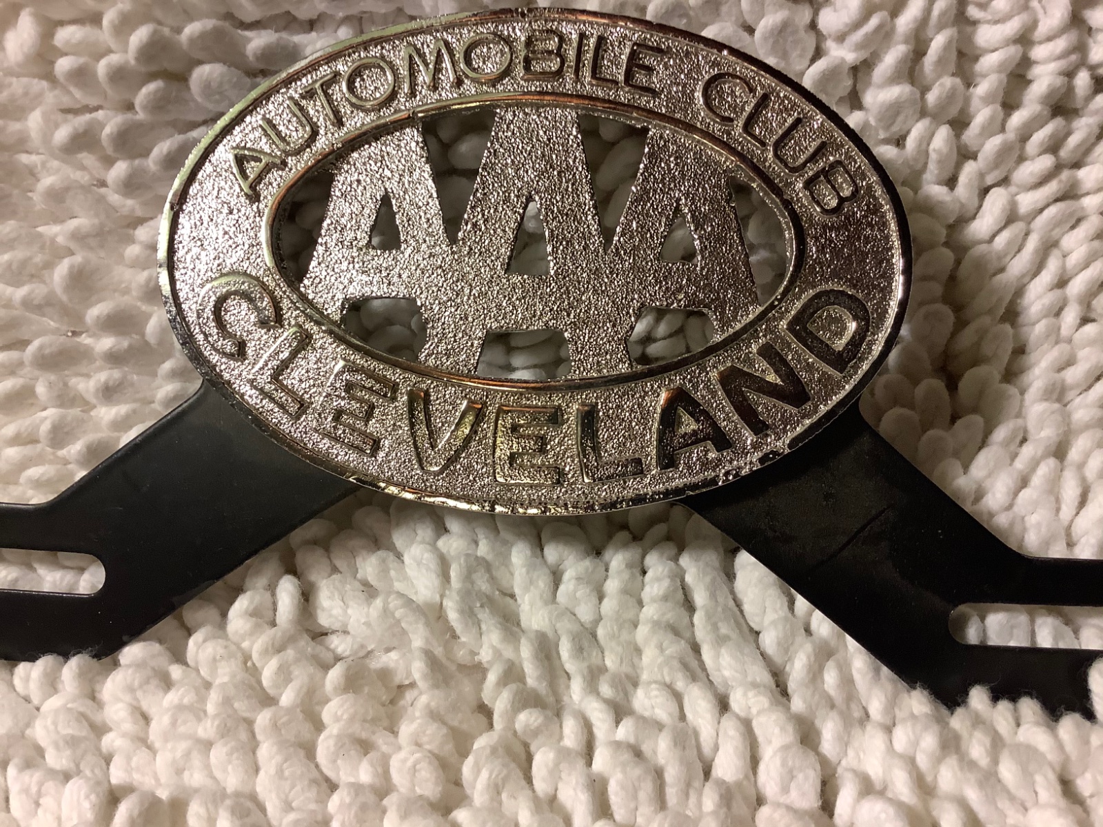 Cleveland Ohio , well worn. Gifted to me by a long time car friend. I use this on a 1925 Ohio plate with a Cleveland metal frame. My dad was born in Cleveland in 1925