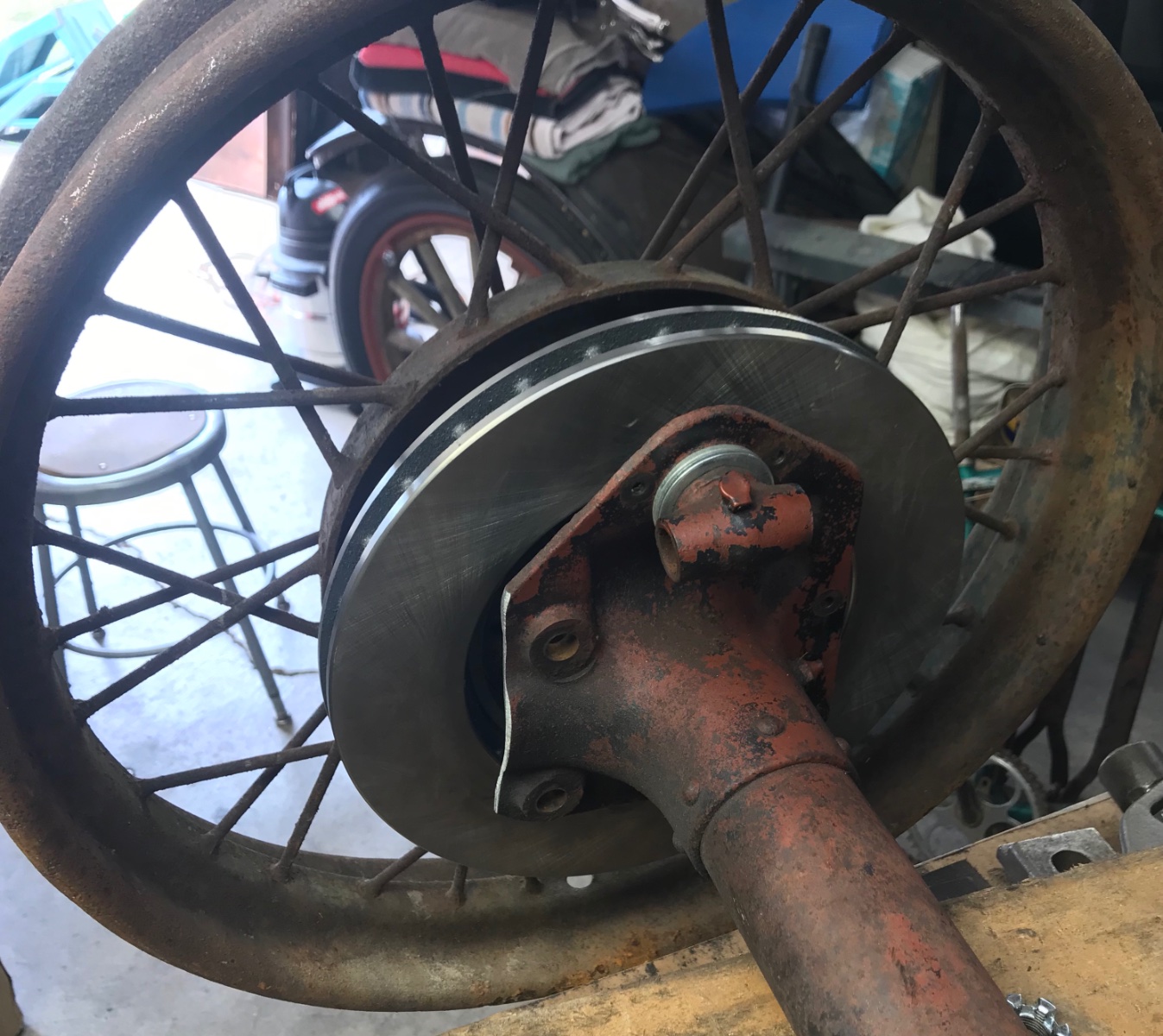 Kevin, the rotors and calipers are 1997 Ford Ranger. The same parts are on the Ford Explorer or Mercury Mountaineer (I think that’s the name of the Mercury). I have been keeping track of measurements. With this setup the center of the spoked wheel rim is 1.5” wider than the center of the wood wheel rim. If I am thinking correctly that dimension should be the critical one for too wide. I also don’t want the thing to look like a giant wedge going down the road. Next step is to get the caliper bracket designed in CAD. Carefully removing the backing plate gave me a great template to use for the caliper bracket dimensions.Kevin Pharis wrote: ↑Sat Aug 22, 2020 4:52 pmLooks like you’ve lost a bit of sleep over this project. You should have plenty of braking potential with those rotors, and am curious to see what caliper you choose. Keep in mind that spacing the rear wheels out increases the torsional load on the rear axles... think safety hubs!