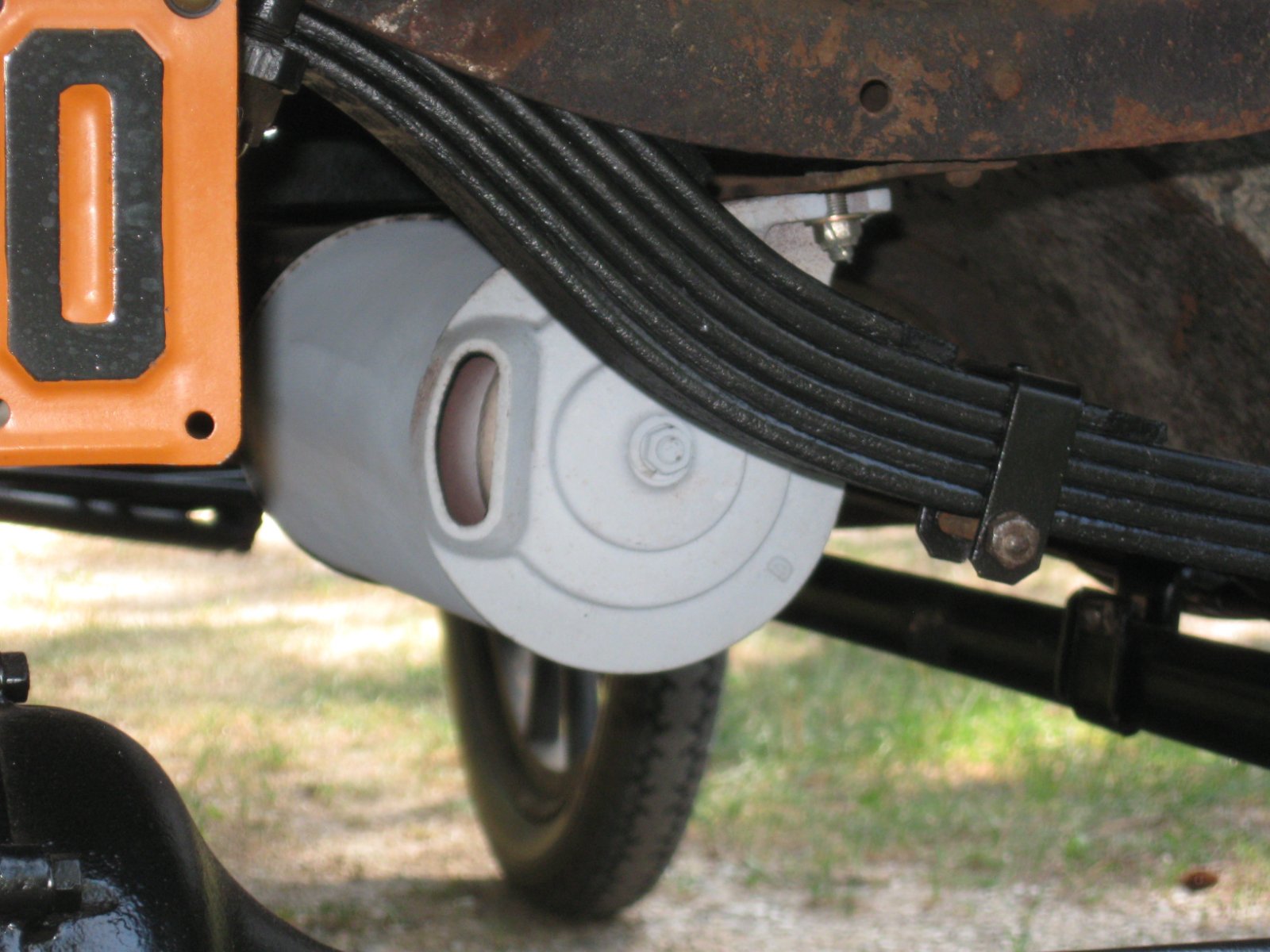 I installed the exhaust pipe and muffler on my 1926 TT chassis. The exhaust pipe is one of Larry Smith's fine reproductions and the muffler ends are originals. The two outer shell pieces are from a reproduction muffler while the inner shell is part of the exhaust pipe. The fit was great, making for an easy assembly and installation.