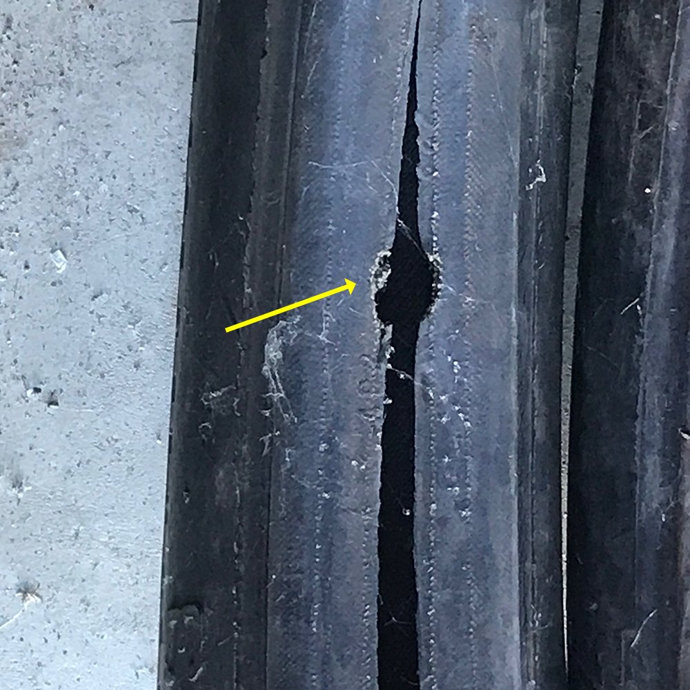 2.) The tire stems were cut / torn on one side not fore and aft which I would have expected had the tires slipped on the rim. I'm going to put little paint marks on them to monitor for any slippage.
