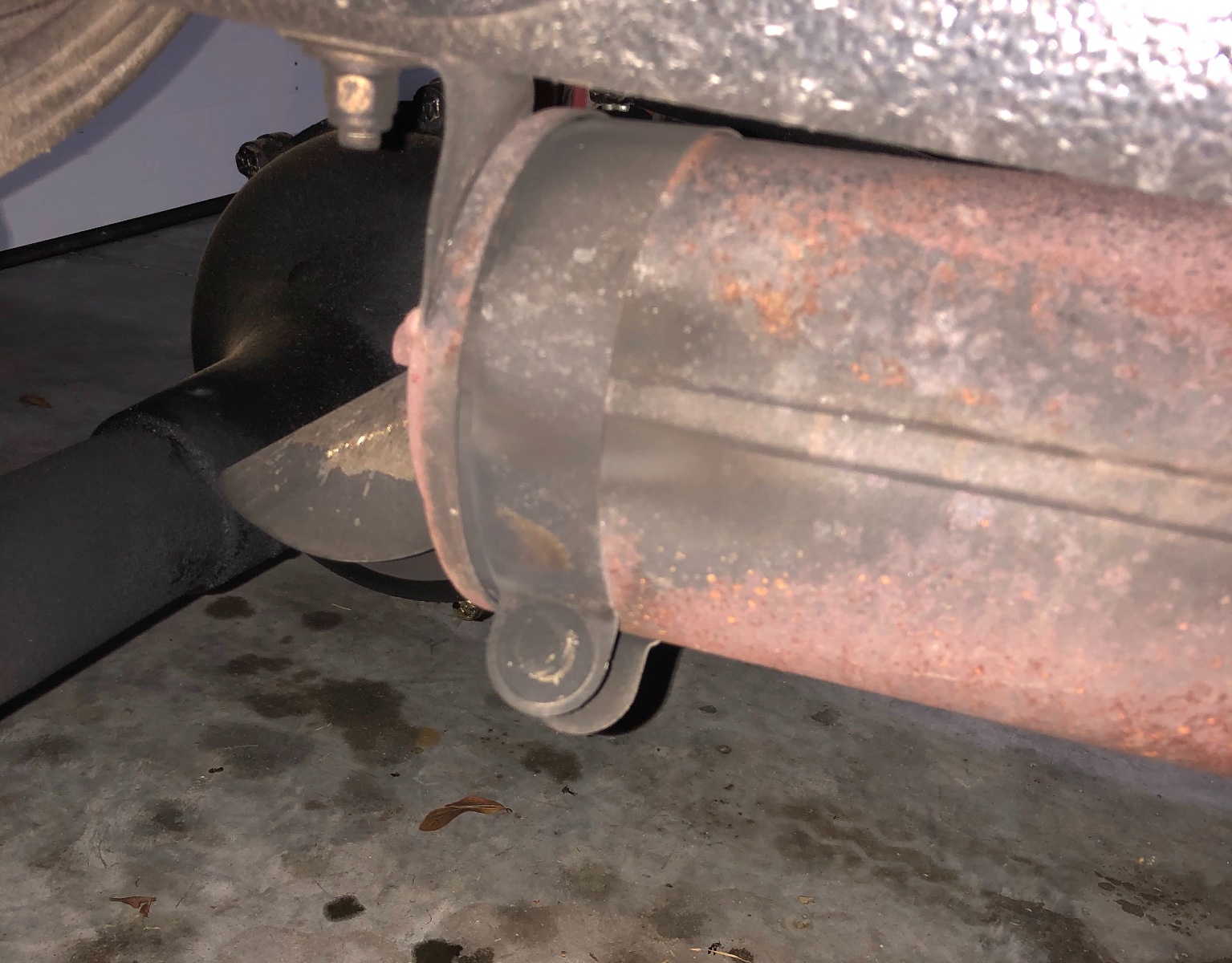 My Holden bodied Tarrant tourer has the fuel tank hanging under the spare tyre carrier at the back, so I have even more to keep clean. I welded an extension onto the rear muffler end. It hangs vertically, low enough to clear the back axle and everything else. It looks a bit like the dangly bit under a stallion, but it does a really good job.