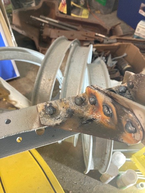 Thanks. I have found the air hammer is superior to a hand bucking bar for both speed and result. Also don't let your teenager play with the oxy-acetylene rig they will use up all the gas and ask you to get the bottles filled twice before you forbid them from touching it. I count approximately 34 rivets on a frame so using the air hammer speeds it up quite a bit. More results pictured.