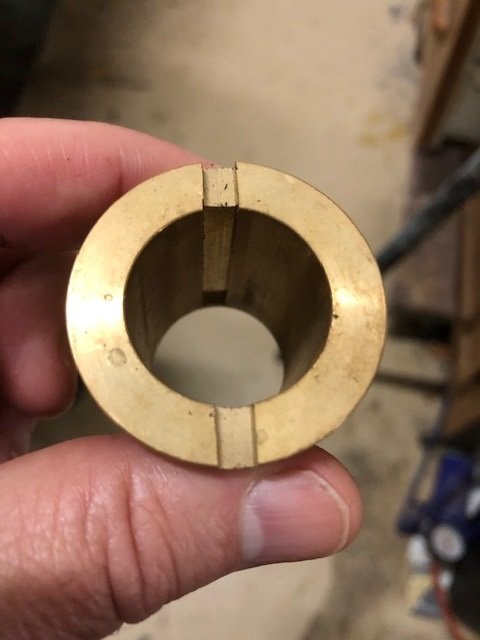This will be a new brass bushing. I will need to ream it as it already just barely does not fit over the square part at this time. I have a set of reamers but I wonder if the reamer will catch on the 2 channels on either side of the brass bushing?