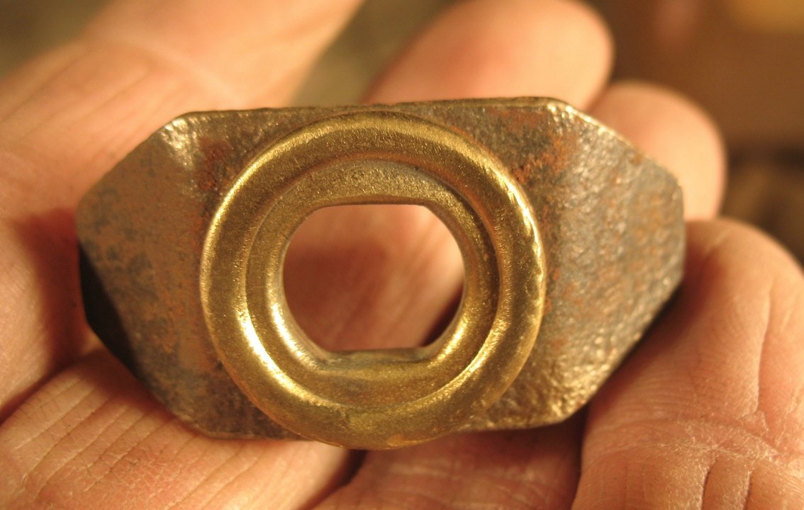 Somehow, I came in possession of a couple of flat bridge washers with the smaller, Schrader 777 hole size. I really wanted to use them with my 777 stems, so I came up with a plan. I bought some 1/2 inch brass plated steel grommets and crazy glued one half of the grommet to the bottom of the bridge washer. This perfectly mimics the dimple on the bottom of original bridge washers. Once installed on the stem and tightened down, the grommet can't go anywhere, the crazy glue is just for holding the grommet in place during installation. I did have to do some sanding on the excess crazy glue to get a smooth surface.
