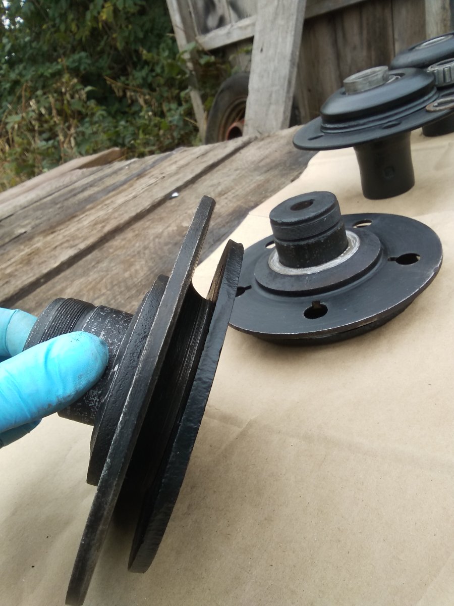 Model A rear hubs machined and ready to be welded to Model T rear wood wheel hubs.