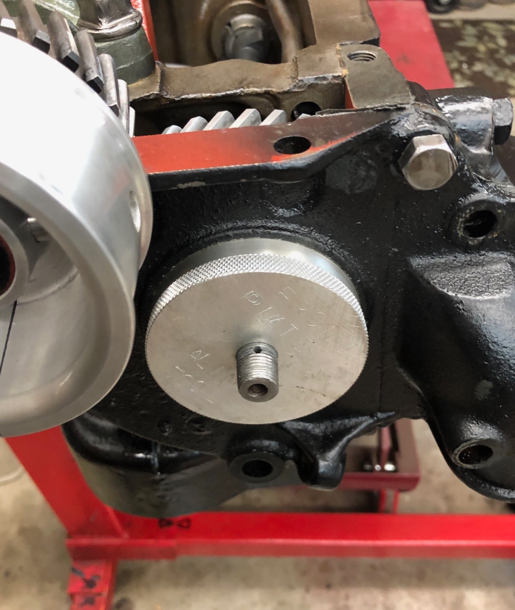 centering tool used to position the front timing cover concentric to the camshaft … this tool sets in the timer recess and assures the centering of the front cover during assembly … uniform timing and improved performance between individual cylinders is achieved as a result … price $24.00 + $7.60 flat rate priority mail postage in lower 48 states … actual postage outside this area or international … Gene French ph. 970-581-2808