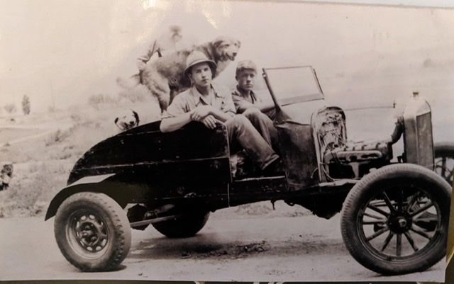 It's been a while since anyone told me about the Model T they bought for $5. If you lived in Buhl in the 40's and wanted to drive bad enough you could put something like that together. We're lucky they took the photo of it for us to enjoy today. I'd say a '24 or'25 chassis with those late 30's steel wheels on the back. They don't look like the Ford V8's to me. Perhaps the wood body from a torn down building. We can only imagine the adventures those guys had.