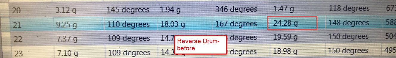 This example the drum total unbalance was 14.7 grams far better than the factory one Dan used. I balanced this one to two hundreds of a gram in no time.