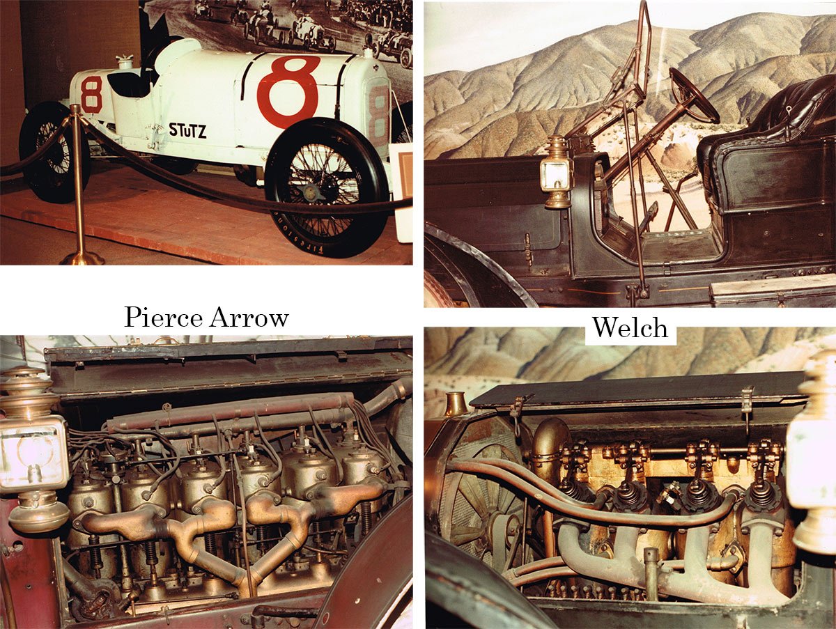 Jim Zorich was curator when we were there and opened a couple of hoods for us. Shown below are the Pierce Arrow and Welch motors. Also on display was the #8 Stutz race car. Jim drove that one on an HCCA Tour in Sun Valley, ID in 1975. What a treat to see and hear it in action.